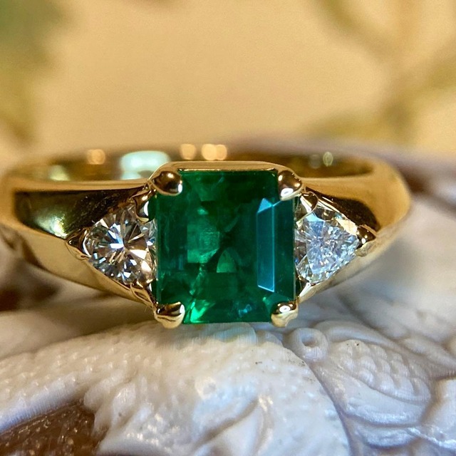 深い森の奥底に差し込む光を閉じ込めたような、静謐で気品溢れるエメラルドをあしらったリングのご紹介です。 エメラルドは、その性質上、美しさを保つためにオイル含浸が施されるのが一般的ですが、この石に与えられたGIAの鑑別結果は「 F1 」。これは、エメラルドの透明度を損なう要因が極めて少なく、微細な処理に留まっていることを証明しています。 市場に出回る多くのエメラルドがF2、F3とされる中で、F1の評価を得る石はほんの一握り。この石が持つ本来のポテンシャルの高さ、そして視線を惹きつける力強い「テリ」は、まさにこの希少なコンディションから生まれています。 その内部に目を向けると、エメラルド特有の内包物である「ジャルダン(庭園)」が優雅に広がっているのが分かります。 F1ゆえの優れた透明感があるからこそ、このインクルージョンが、まるで石の中に息づく自然の風景のように美しく映し出されます。天然石ならではの証であり、持ち主だけが愛でることのできる密かな芸術です。 このリングの素晴らしさは、主役の石を支える職人の丁寧な仕事にも宿っています。 台座はエメラルドを優しく、かつ堅牢に包み込む緻密な造り。特筆すべきは、リングの裏側に施された繊細な裏張りです。美しい模様に透かされた裏蓋は、光を効率よく取り込むだけでなく、滑らかな指通りを実現しており、日々身に着けるジュエリーとしての心地の良さにもしっかりと配慮されています。 時を忘れて眺めていたくなるような、深いグリーンと黄金のコントラスト。 見えない部分にまで手間を惜しまない意匠は、まさに一生ものにふさわしい仕上がりです。 自然の奇跡と職人技の結晶が織りなす、唯一無二の輝きをぜひお手元でお楽しみください。 インスタグラムでも動画をアップしておりますので、ぜひこちらも合わせてご覧ください。 https://www.instagram.com/reel/DTk354xiYl7/?utm_source=ig_web_copy_link&igsh=MzRlODBiNWFlZA== 【刻印】 ・ k18 ・ エメラルド 1.23ct ・ ダイヤモンド 0.25ct 【重さ】 ・ 約4.92g 【リングサイズ】 ・ 約12号