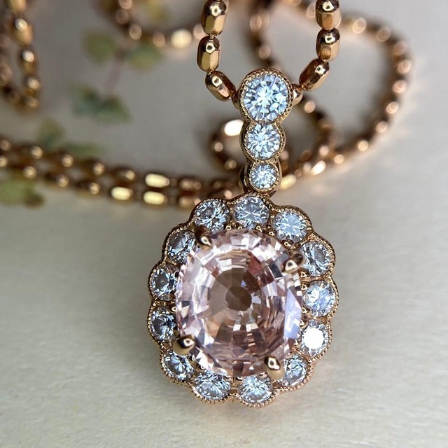 大人のための可憐さ、モルガナイトとダイヤモンドの贅沢な輝き 柔らかな光をまとった、大粒モルガナイトが主役のリング。 一目で感じられるのは、華やかさと可愛らしさ、そして上品さが美しく調和した佇まいです。 センターに据えられたモルガナイトは 3.57ct と存在感のあるサイズながら、色味はとても穏やかで優しく、透明感とテリの良さが際立つ一石。 淡く澄んだピンクが光を受けるたびにふんわりと表情を変え、見る人の心をやさしく惹きつけます。 その周囲を取り巻くダイヤモンドは、ただ華やかさを添えるだけでなく、モルガナイトの柔らかな魅力を引き立てる名脇役。 上品さ、豪華さ、そして可愛らしさ——それぞれが主張しすぎることなく、絶妙なバランスでひとつの世界観をつくり上げています。 地金には K18ピンクゴールド を使用。 肌なじみが良く、モルガナイトの優しい色調と自然に溶け合い、リング全体に温もりと女性らしさを添えています。 デザイン全体から感じられるのは、甘さだけに寄らない、きちんとした品格。 華やかでありながら決して派手すぎず、可愛らしさの中に大人の落ち着きを感じさせる一本。 特別な日にはもちろん、ふと気分を上げたい日にも、そっと背中を押してくれるようなリングです。 インスタグラムでも動画をアップしておりますので、ぜひこちらも合わせてご覧ください。 https://www.instagram.com/reel/DTx8CTwj2Yu/?utm_source=ig_web_copy_link&igsh=MzRlODBiNWFlZA== 【刻印】 ・ k18 ・ モルガナイト 3.57ct ・ ダイヤモンド 0.25ct 【重さ】 ・ 約6.35g 【リングサイズ】 ・ 約11号
