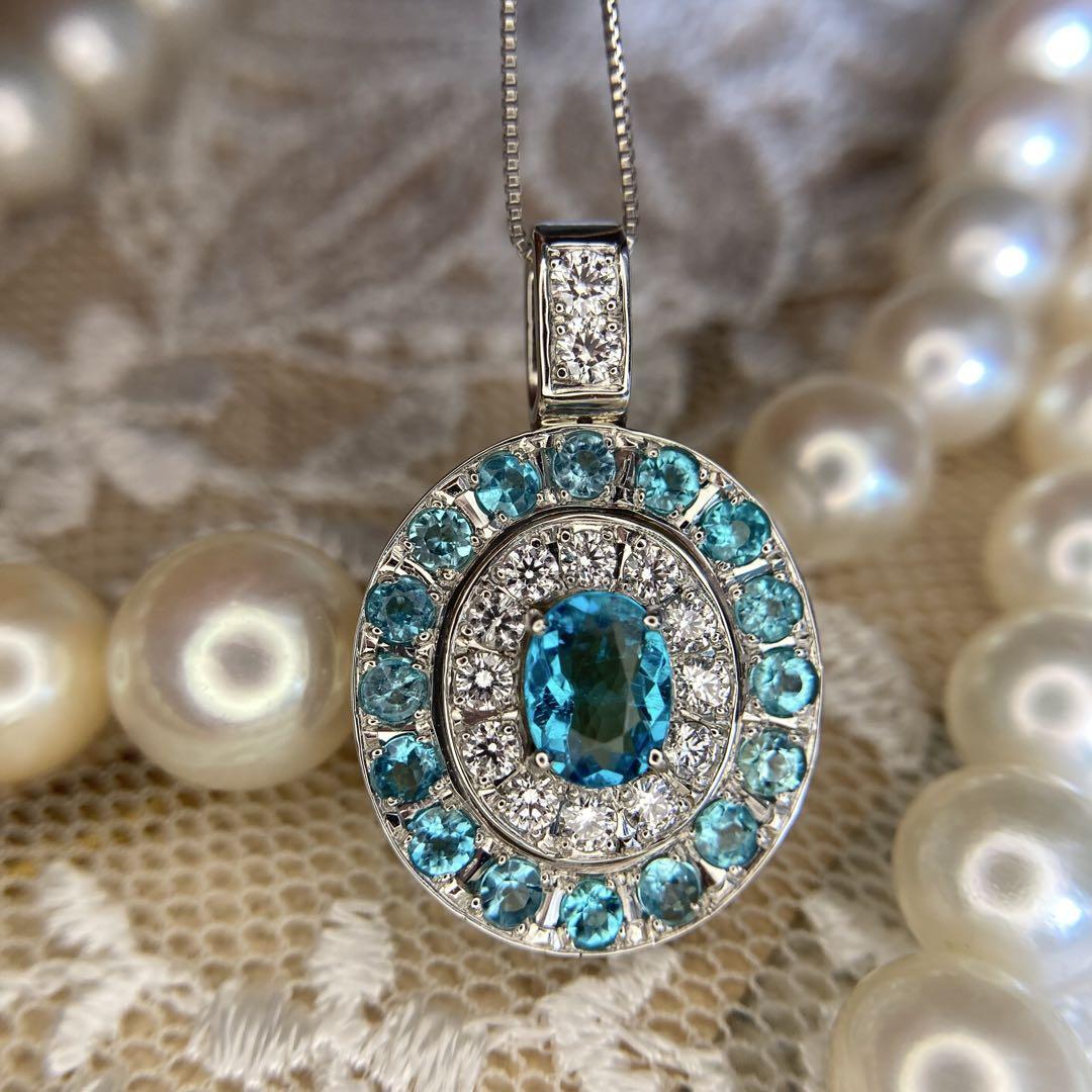 まばゆいばかりのネオンブルーに目を奪われる、極めて特別なパライバトルマリンのペンダントです。