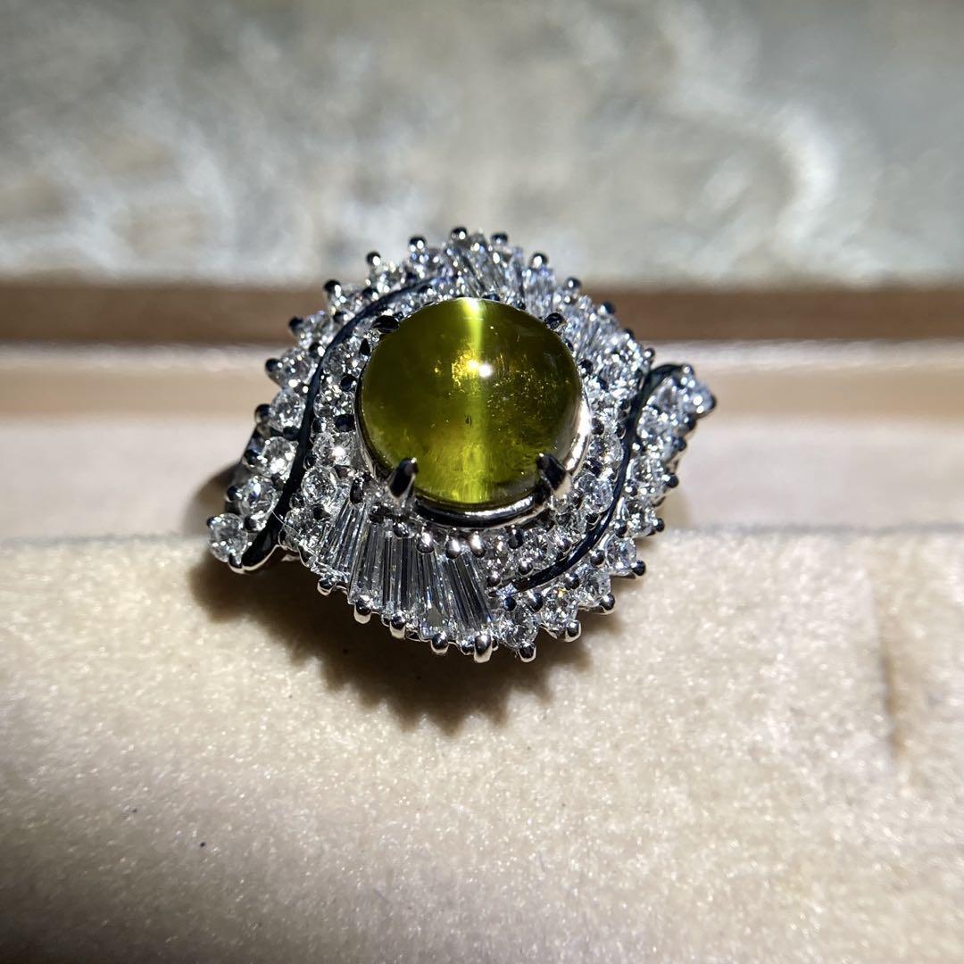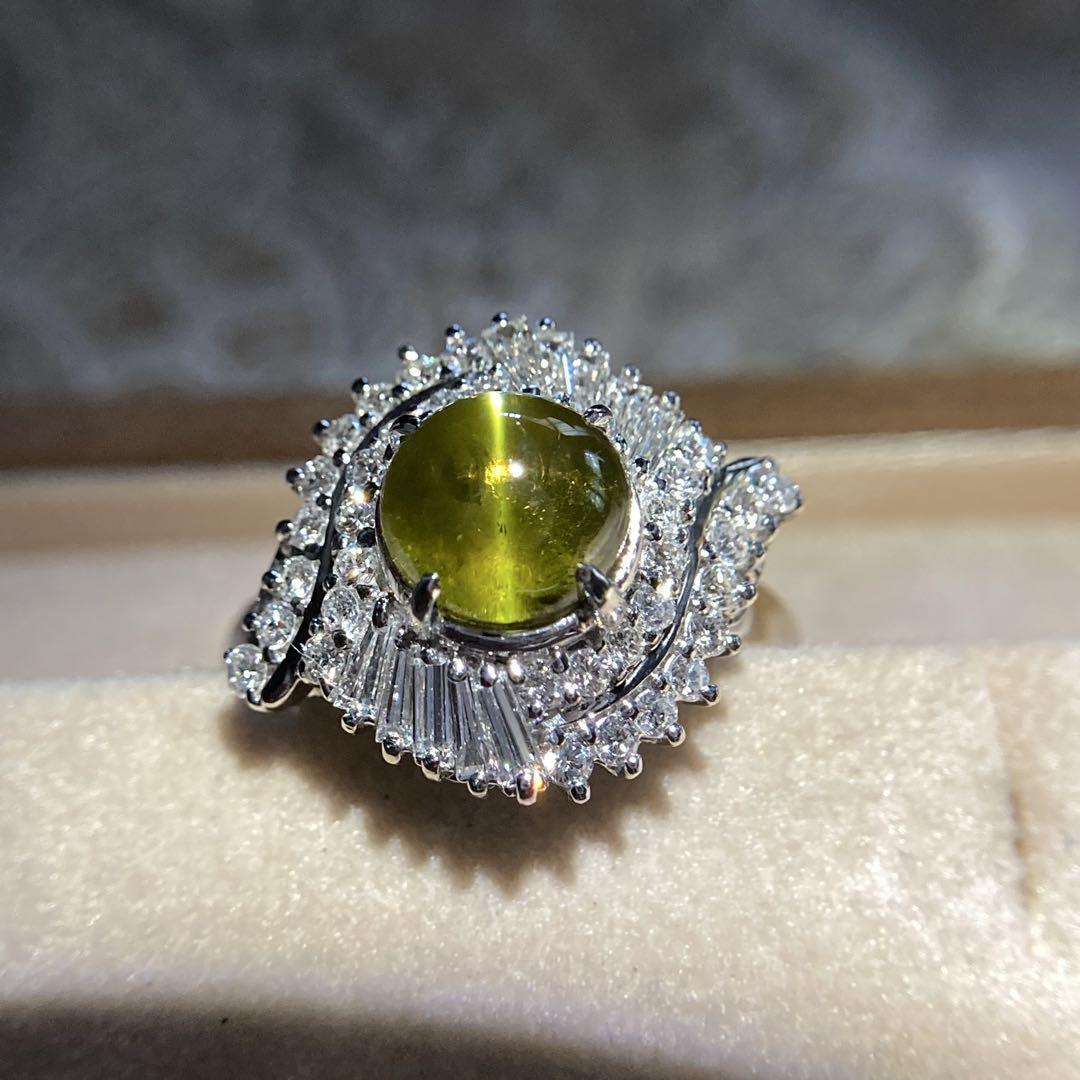 pt900 透明度抜群クリソベリルキャッツアイ2.61ct ダイヤモンド 指輪