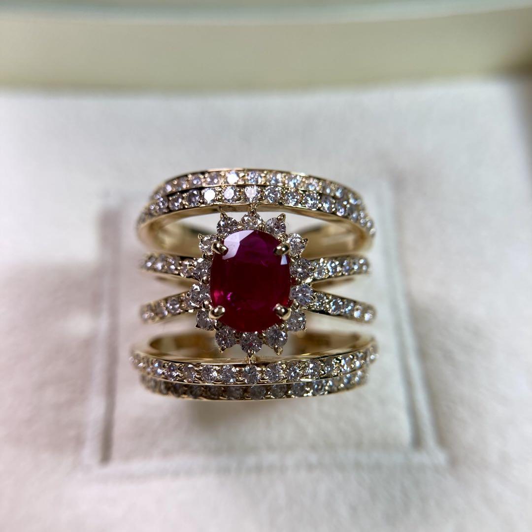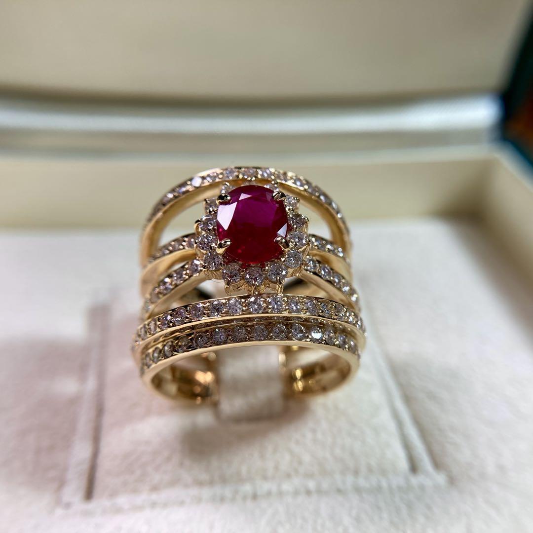 K18ポンテヴェキオビルマ産ピジョンブランドルビー 1.78ct ダイヤモンド リング 指輪
