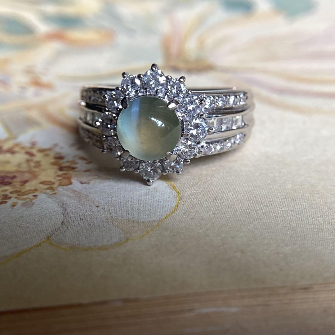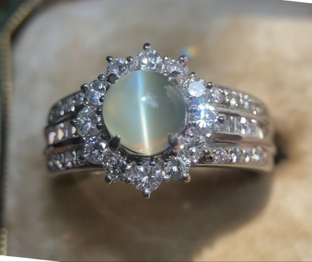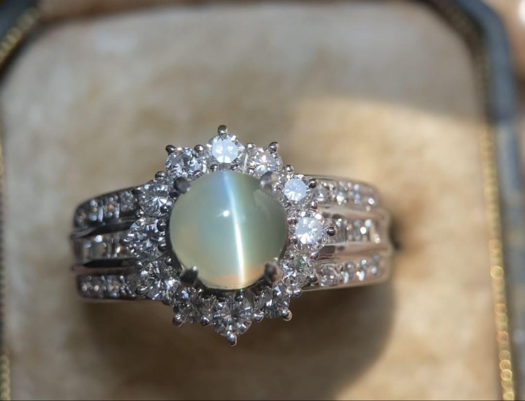 満月のような静謐な輝き ― クリソベリルキャッツアイ ダイヤモンドリング