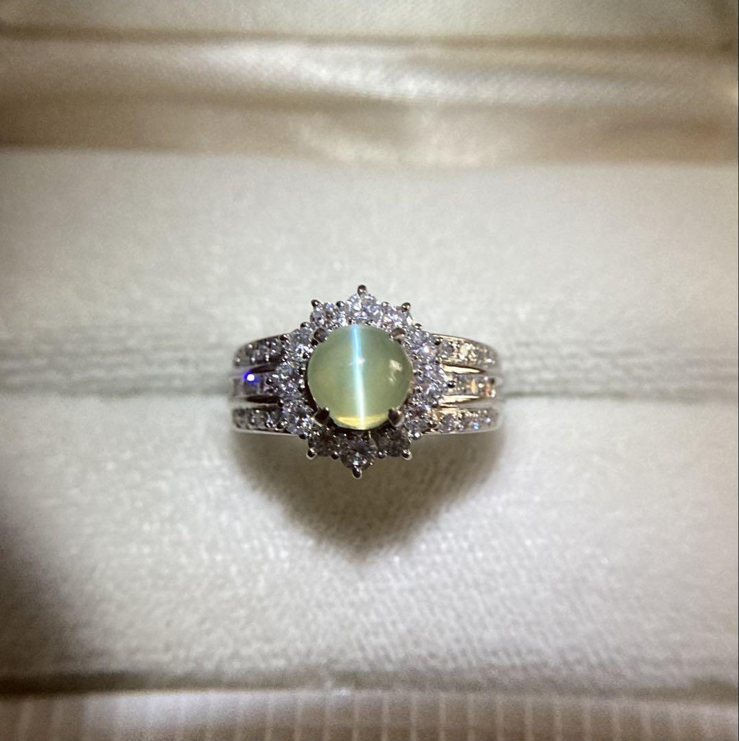 pt900 透明度抜群クリソベリルキャッツアイ2.43ct ダイヤモンド 指輪