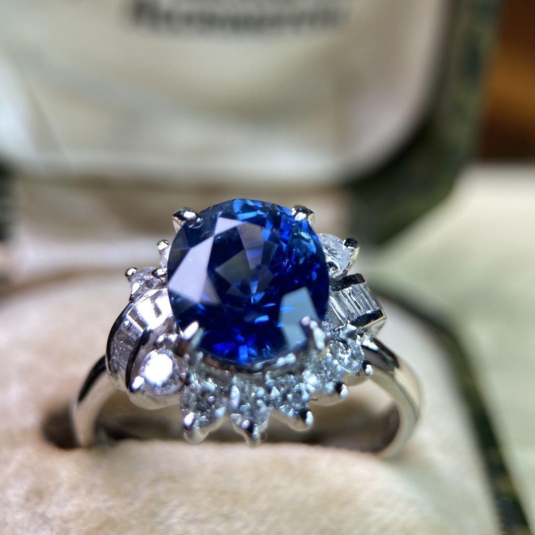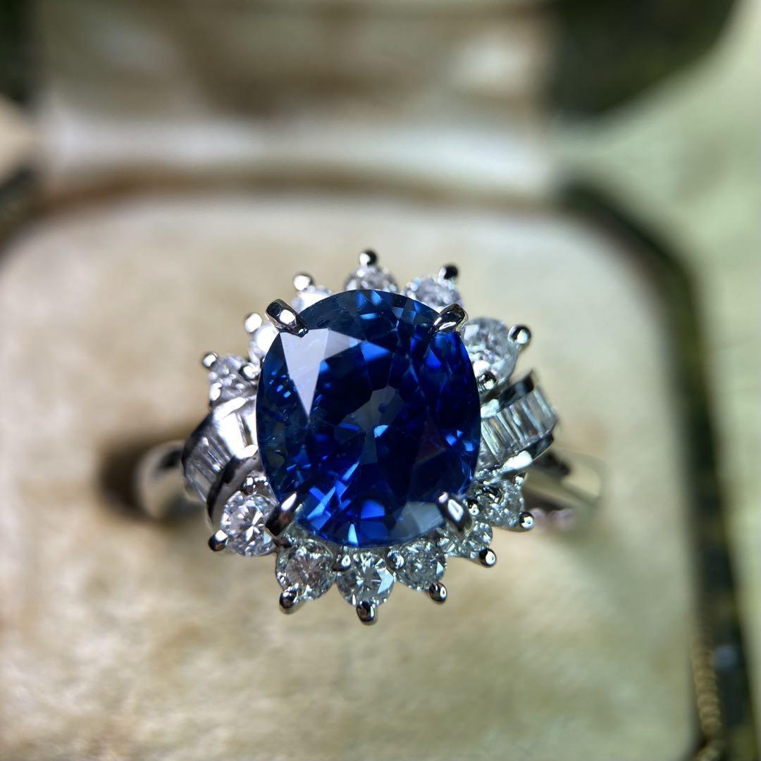 pt900 希少なビルマ産ロイヤルブルーサファイア3.64ct ダイヤモンド指輪