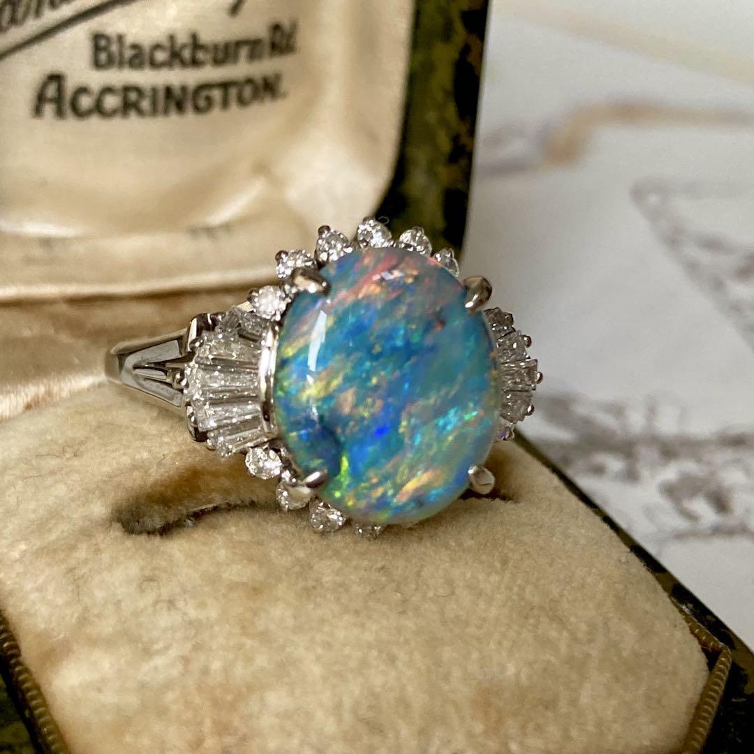 pm900 天然ブラックオパール3.38ct D0.68ct 指輪 昭和レトロ