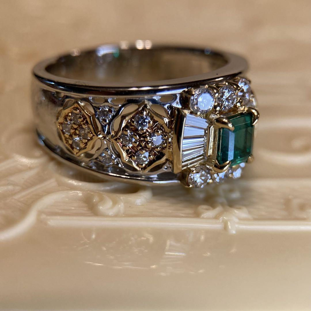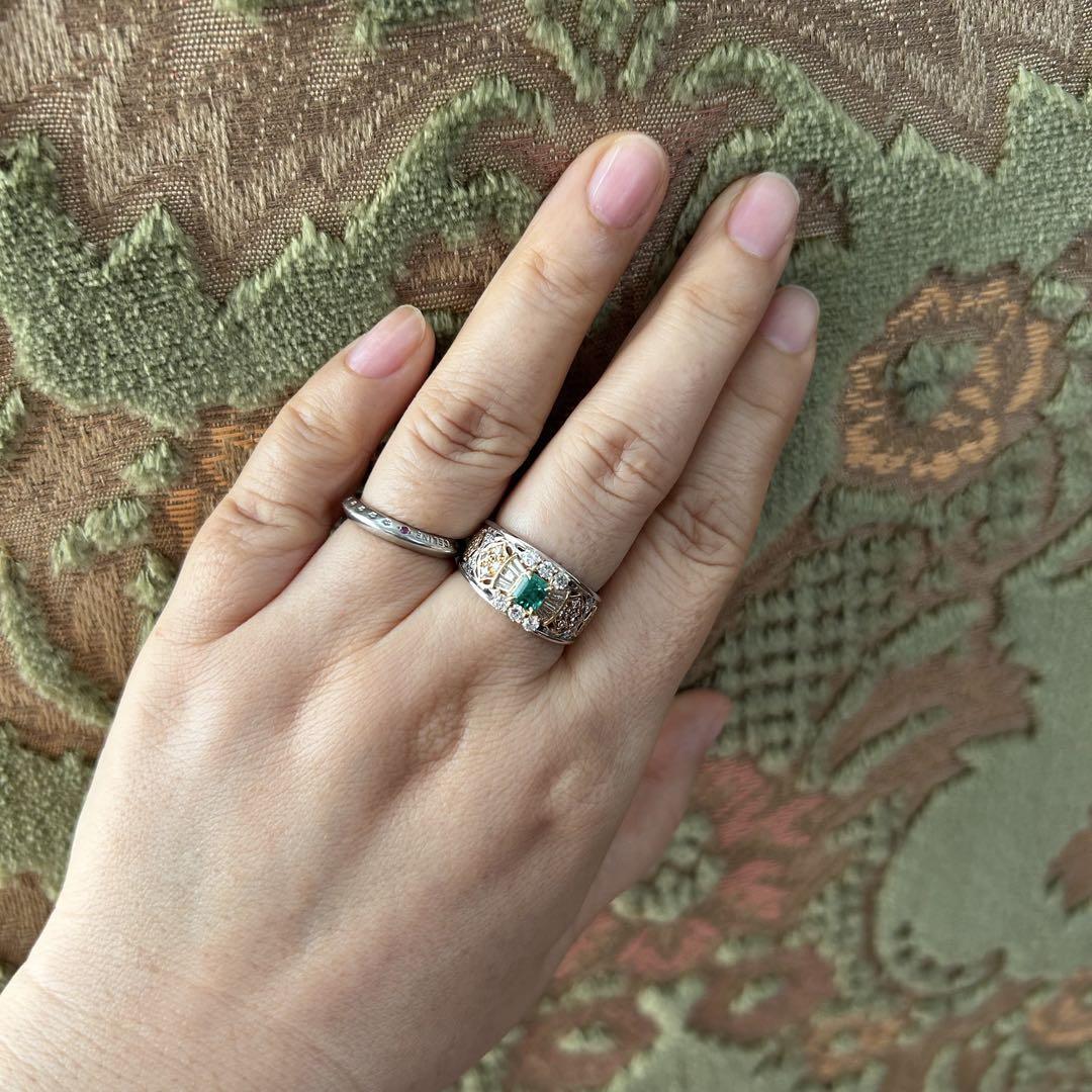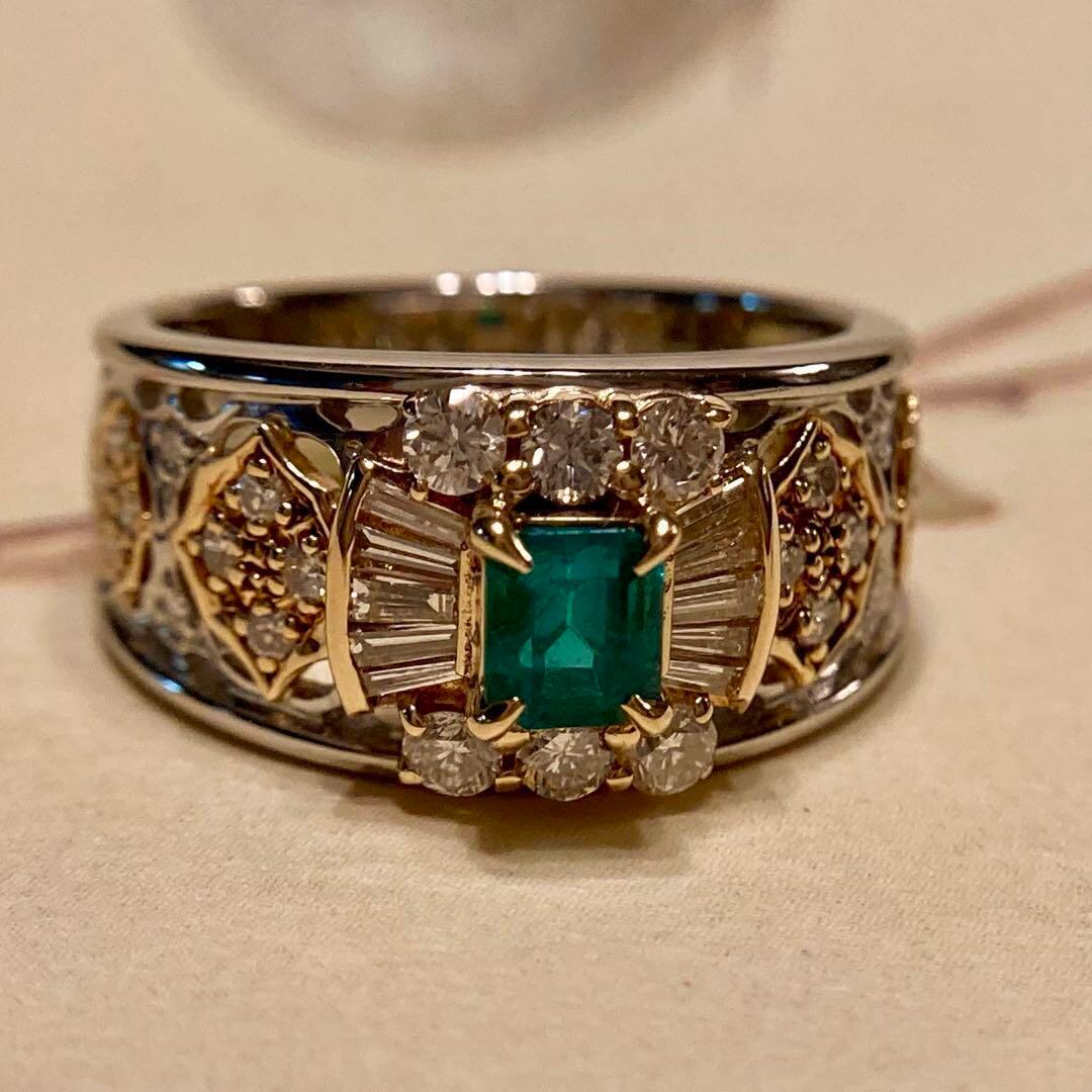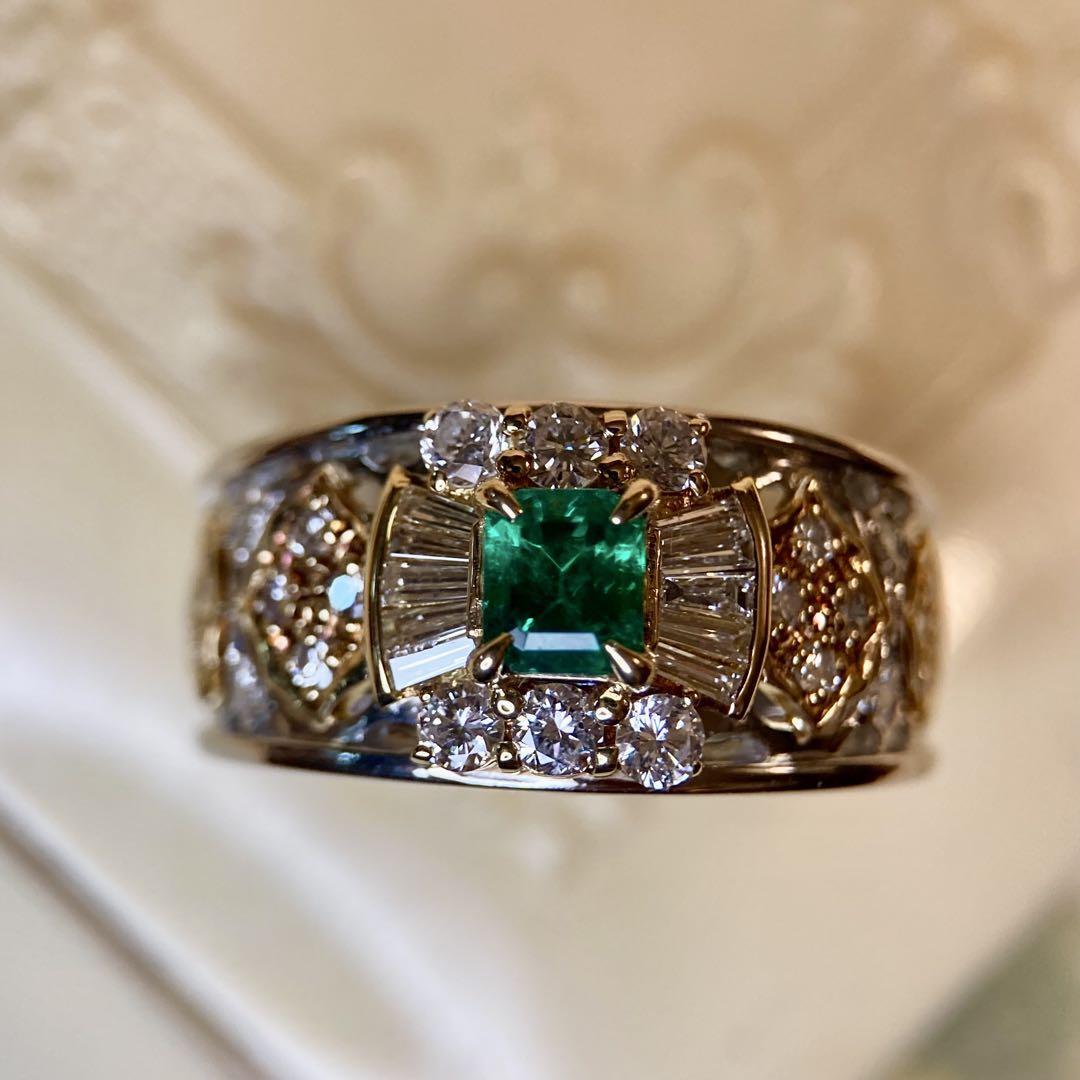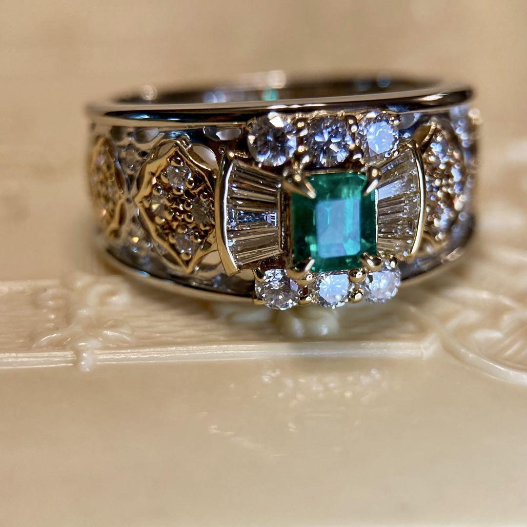 k18 pt900 アンブローズ アールデコデザインエメラルド ダイヤ リング