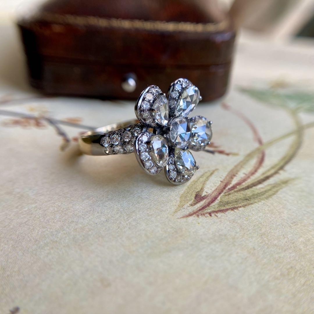 k18 欧州製 ヴィンテージ ローズカットダイヤモンド フラワークラスタリング