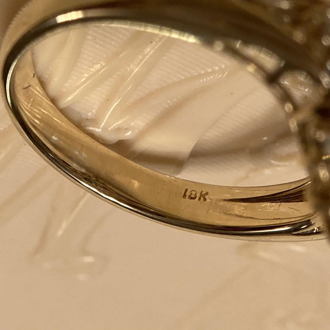 ヴィンテージならではの、どこか温かく、人を惹きつける独特な空気感。それは、長い年月を旅してきたリングだけが持つ「個性」であり、唯一無二の魅力です。素材の750と18Kの刻印は、金の純度が75%であることを示す欧州の正式な証明であり、その確かな価値を物語っています。