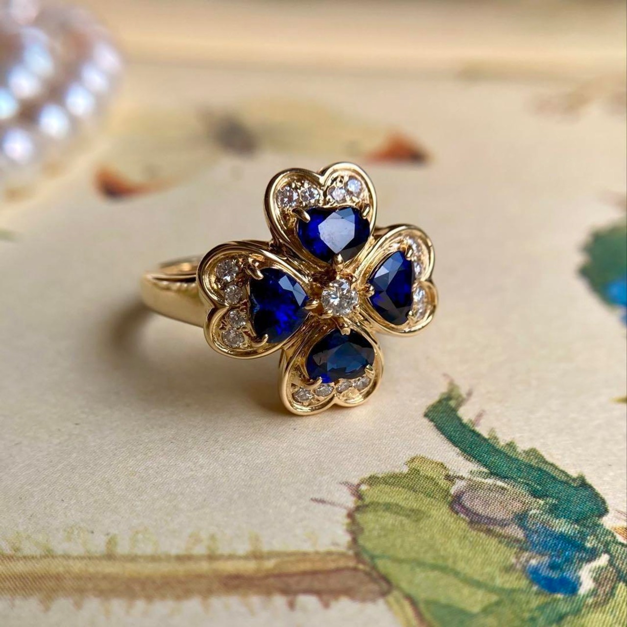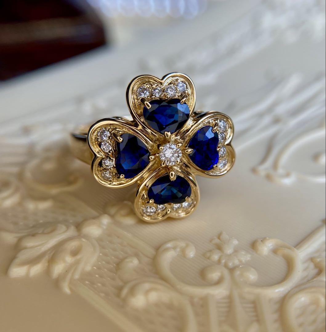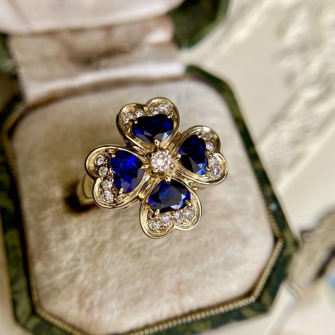 VERITE(ベリテ)K18YG ロイヤルブルーサファイア&ダイヤモンド クローバーリング