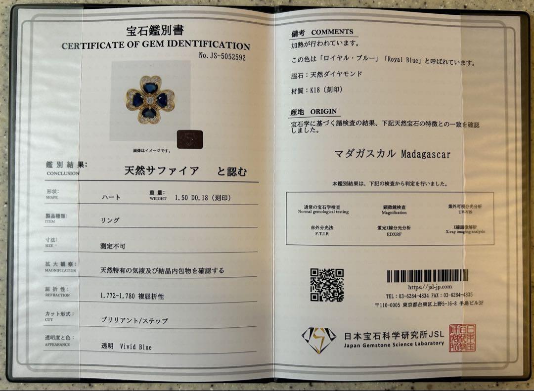 k18 VERITE(ベリテ)幸せのクローバー ロイヤルブルーサファイア 指輪