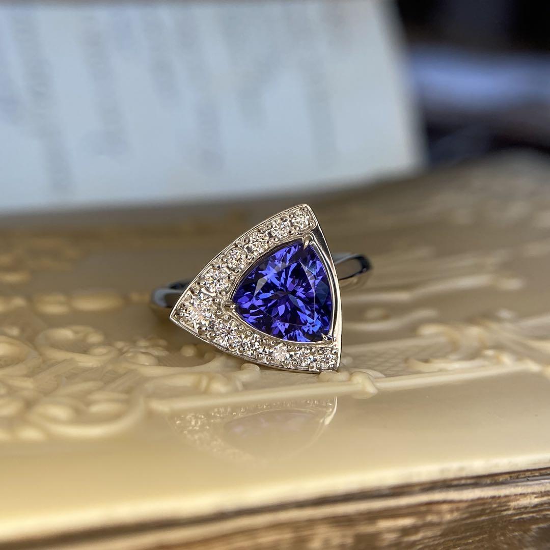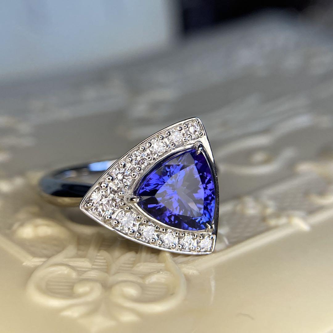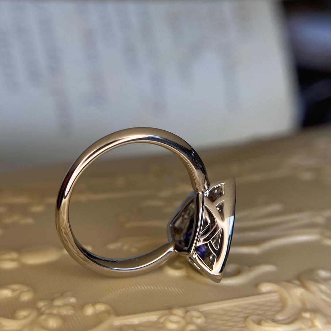 このリングは、そんなタンザナイトが描く夜空に、きらめく無数の星(ダイヤモンド)を散りばめました。