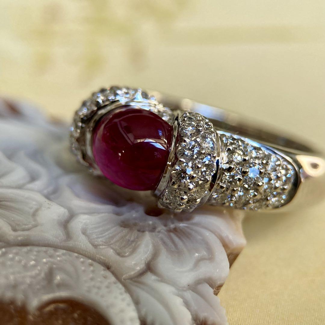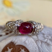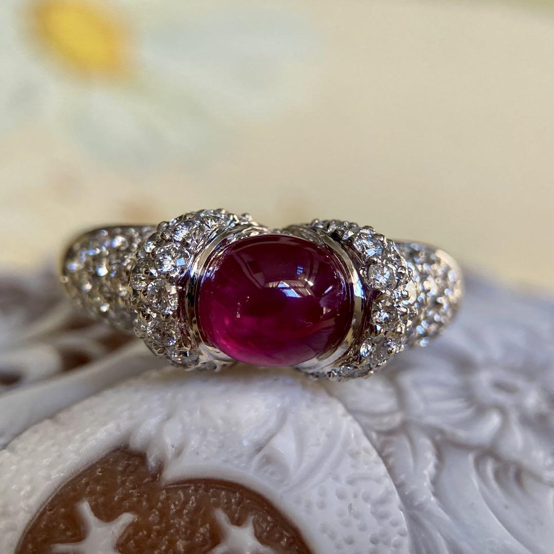 ミャンマー産 ピジョンブラッド ルビー 2.13ct カボション ダイヤモンドリング