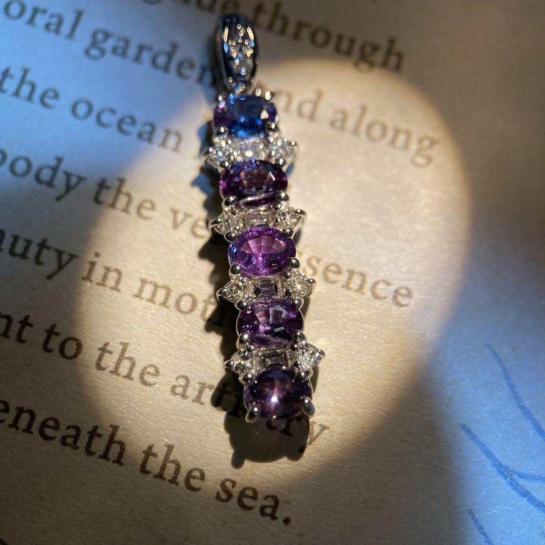 こちらは、そんなアレキサンドライトを贅沢に連ねたペンダントトップです。