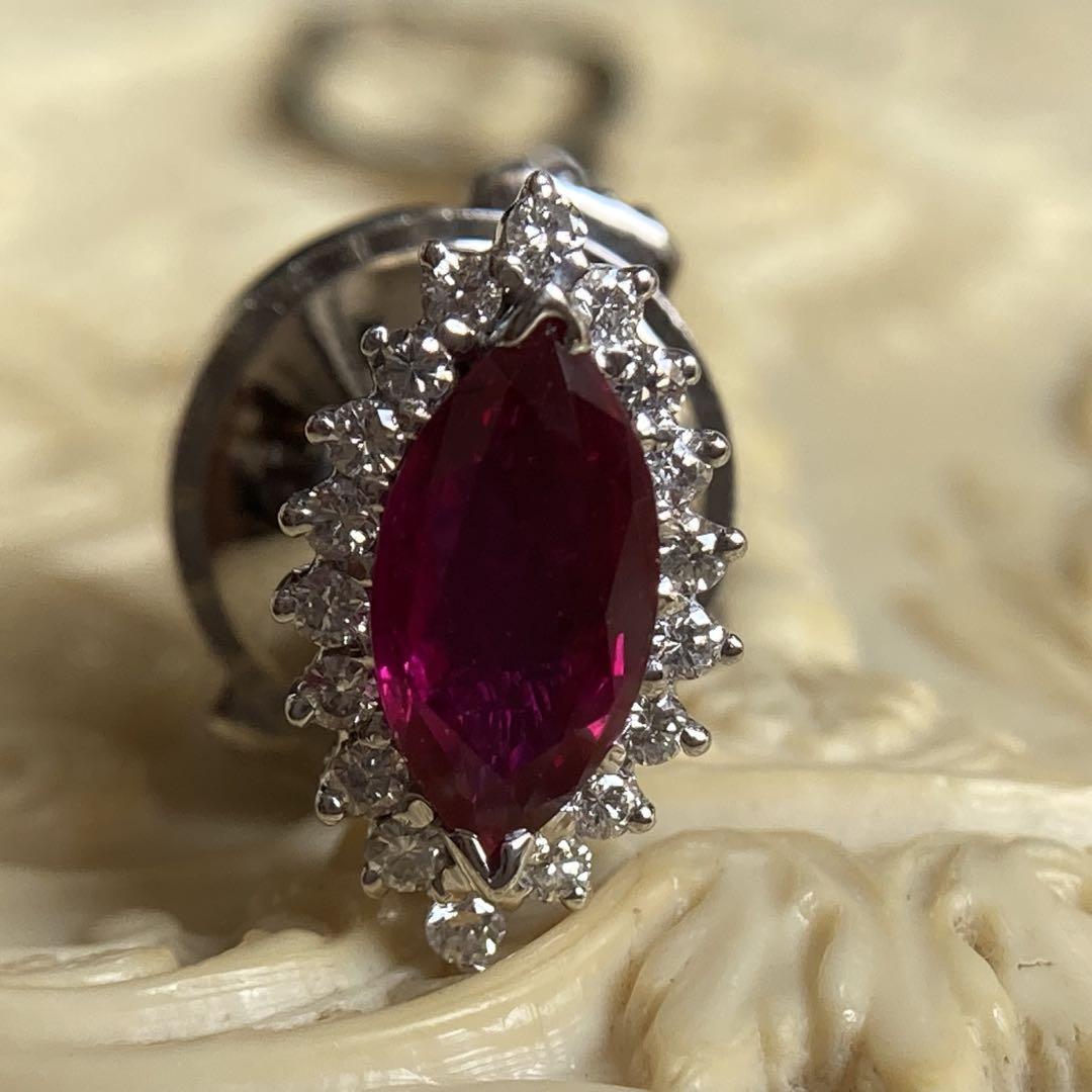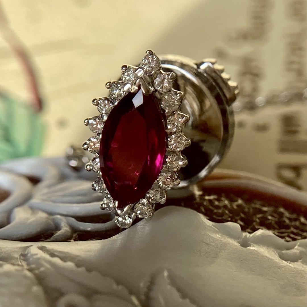 【深紅の輝き、ビルマの至宝】ミャンマー産ルビー ダイヤモンド ピンブローチ/タイタック