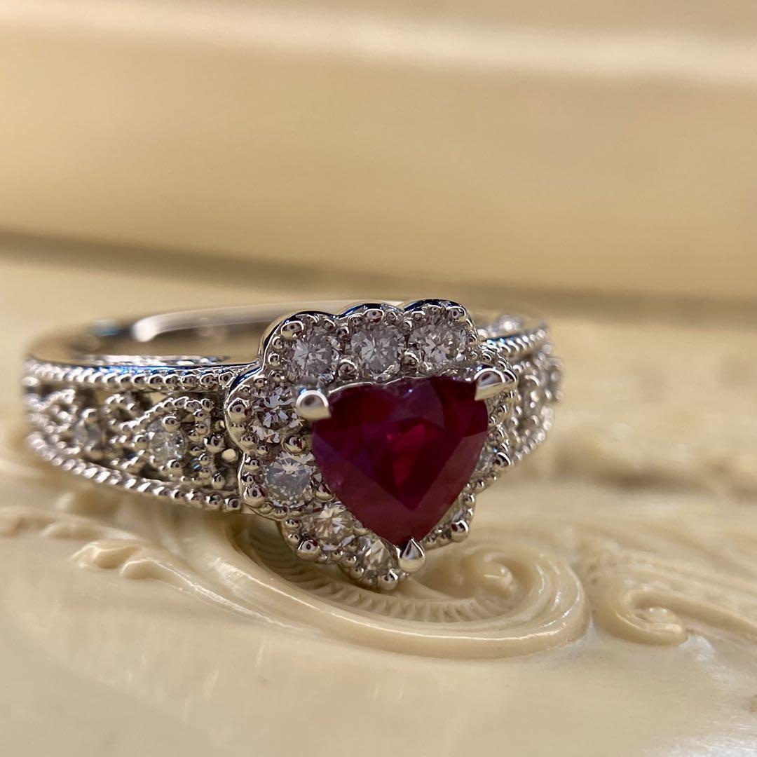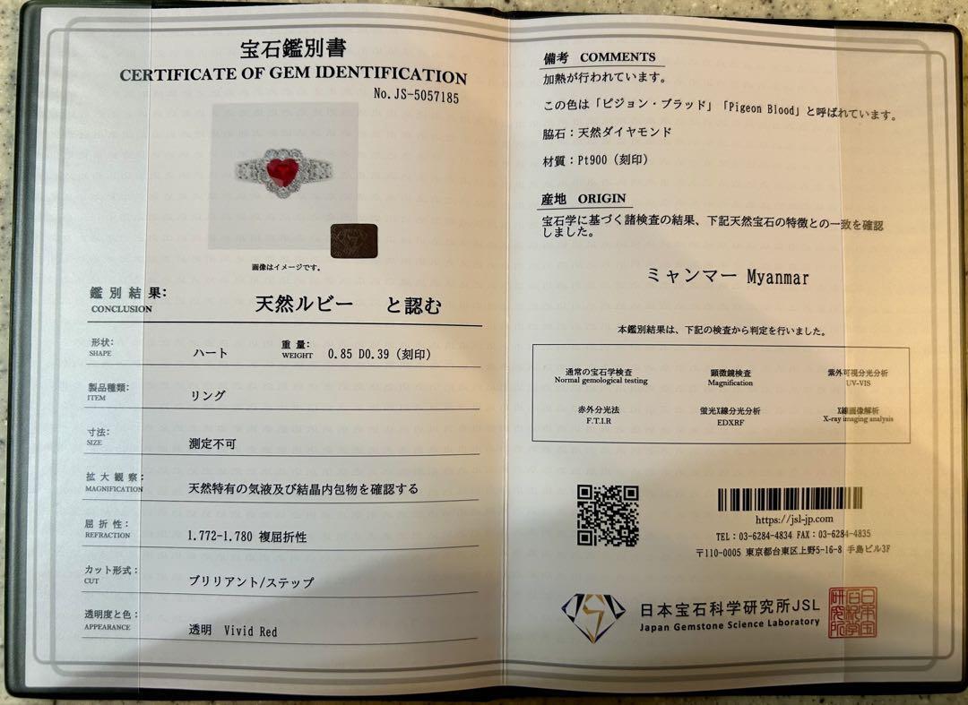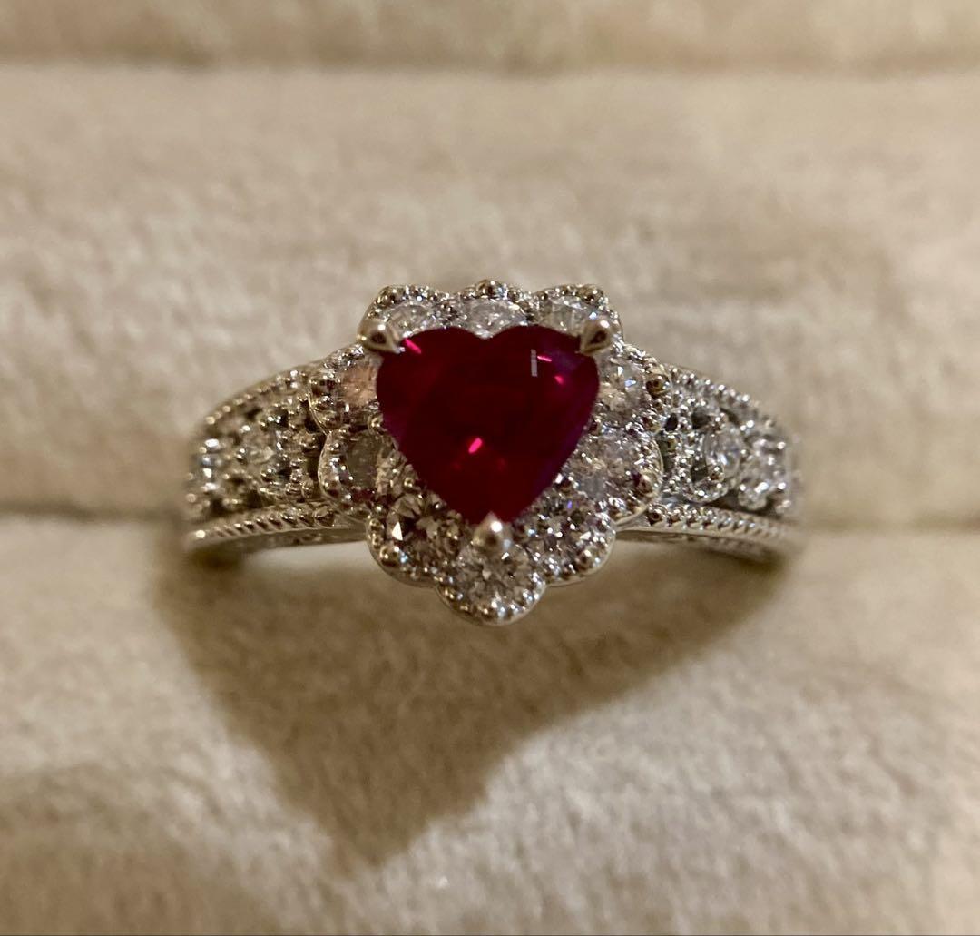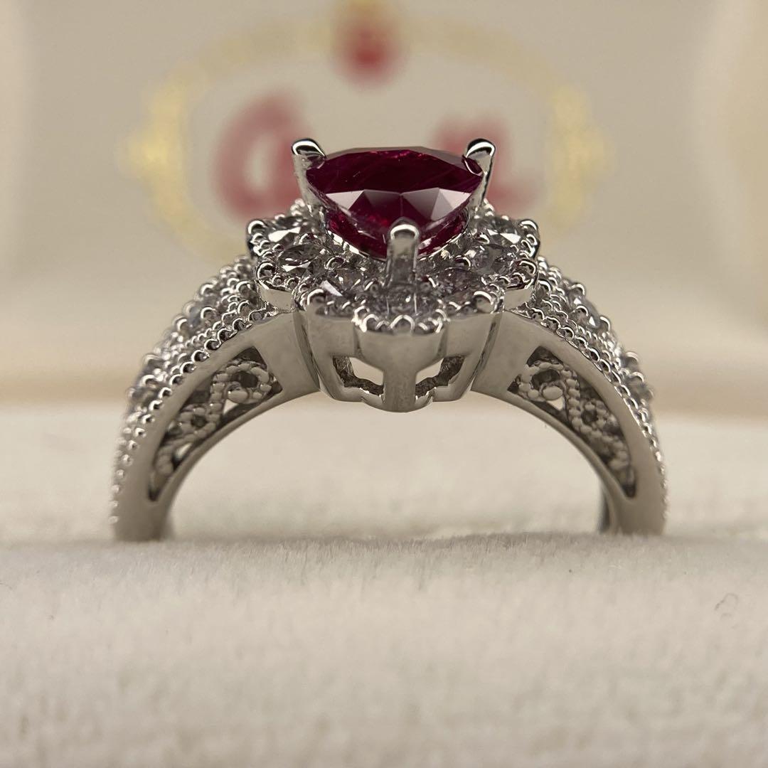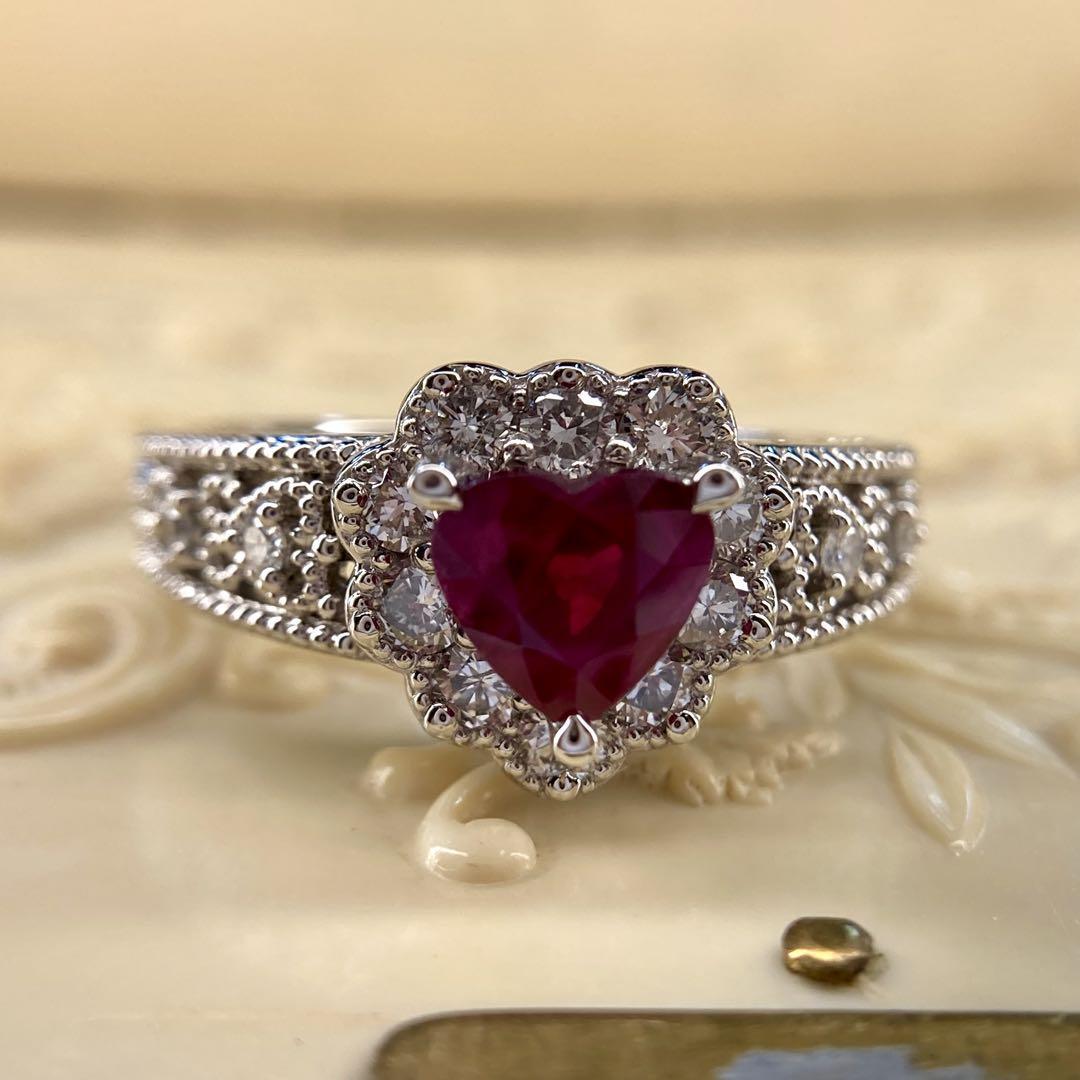 pt900 ビルマ産ピジョンブラッド ハートシェープルビー ダイヤモンド リング