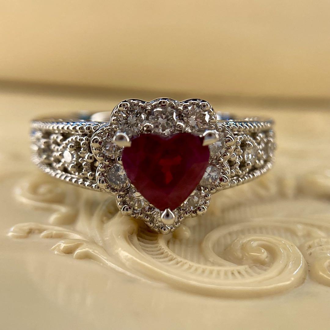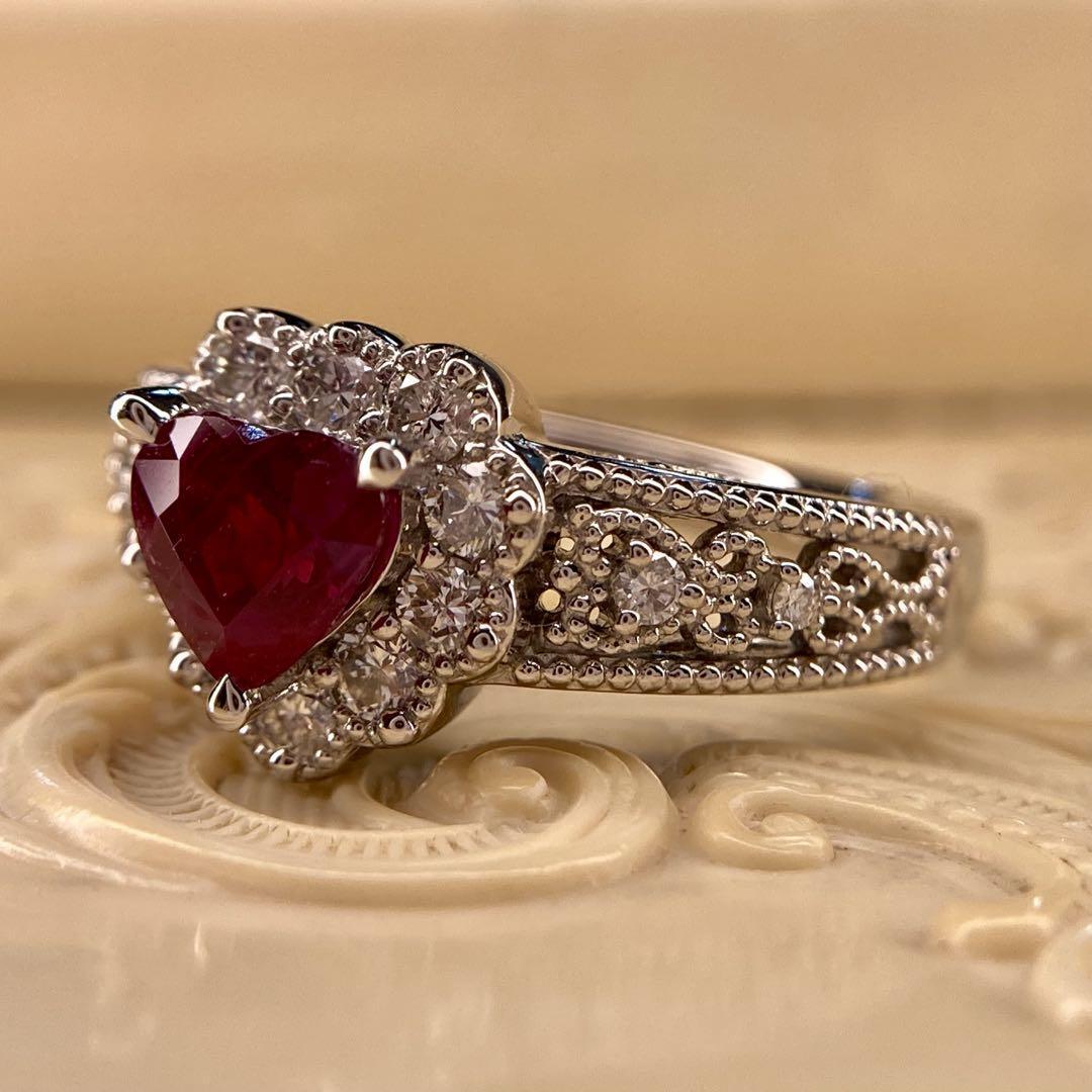 愛らしさの中に、確かな品格と気品が息づくハートシェイプルビーリング。