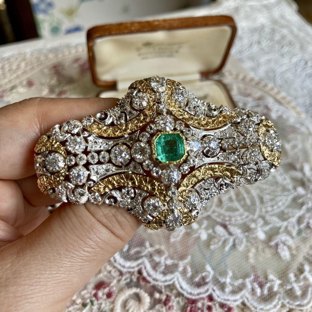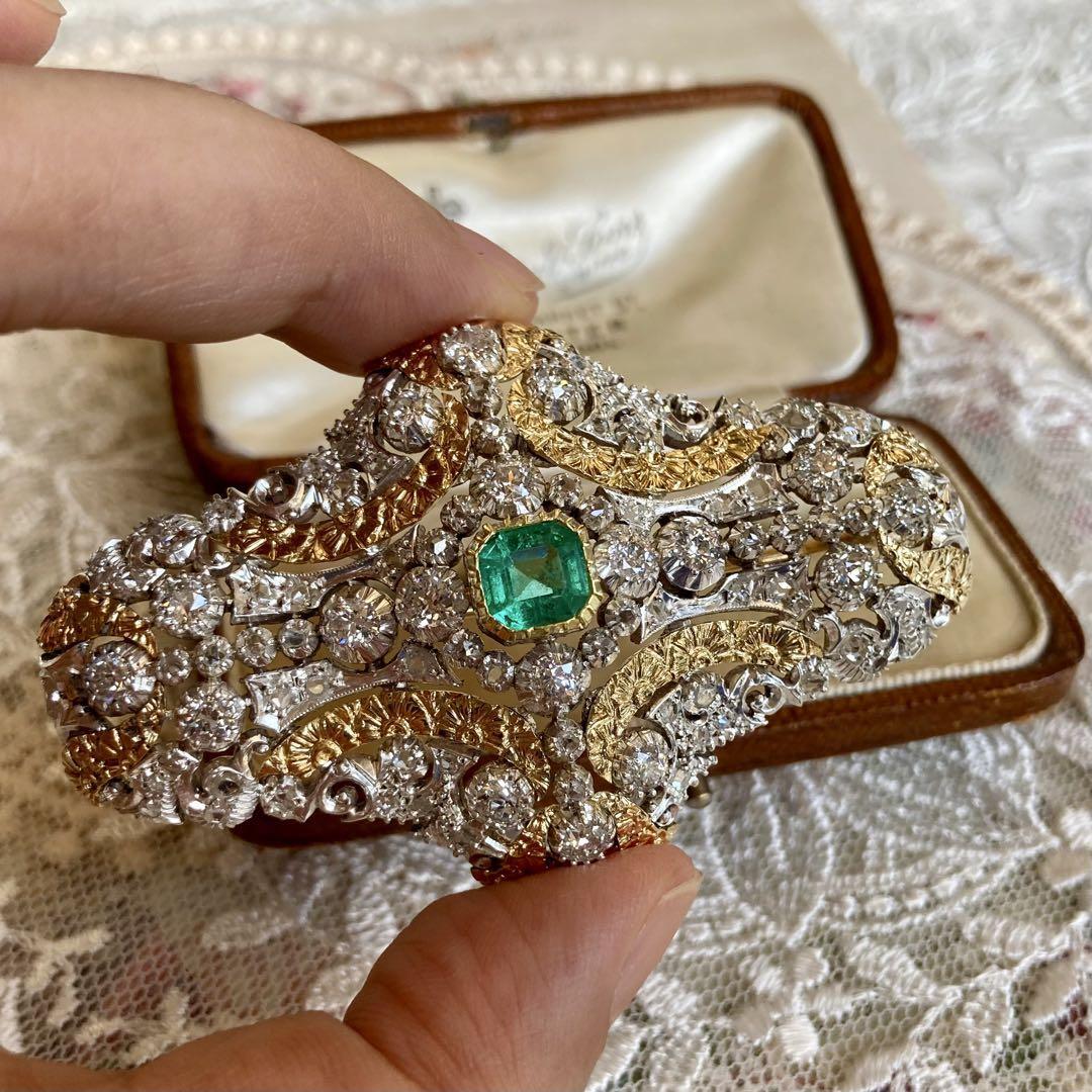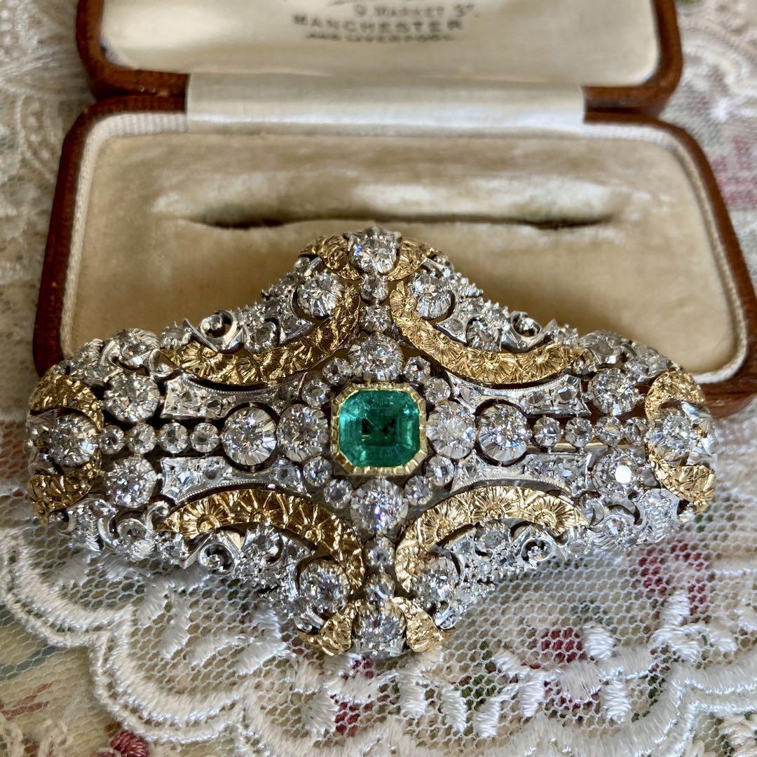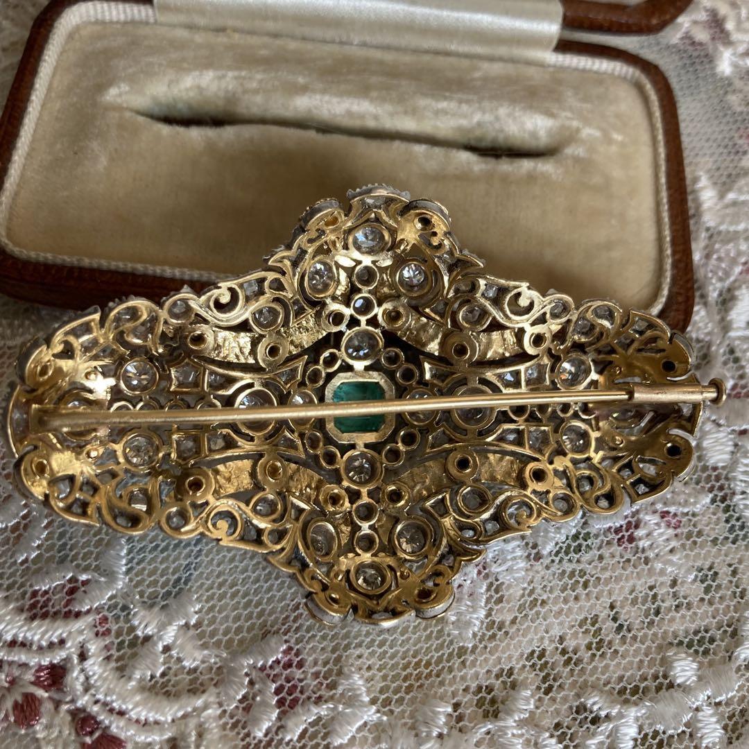 1830年頃 至高の逸品 アンティーク エメラルド ダイヤモンドブローチ GIA / F1