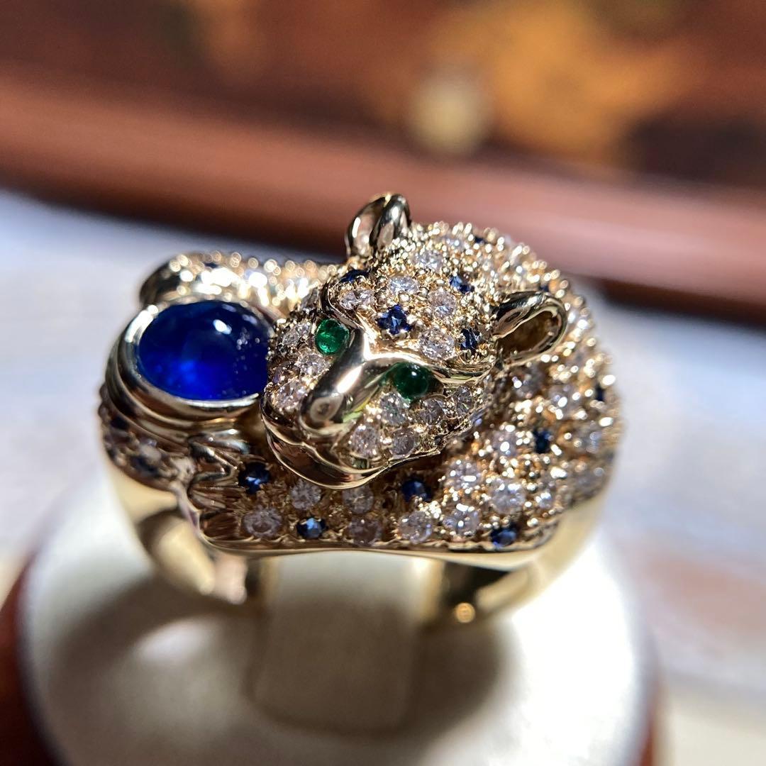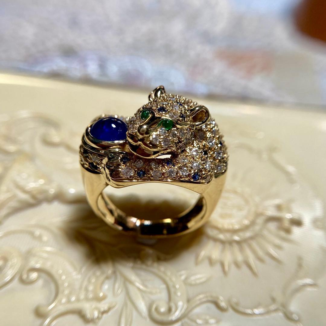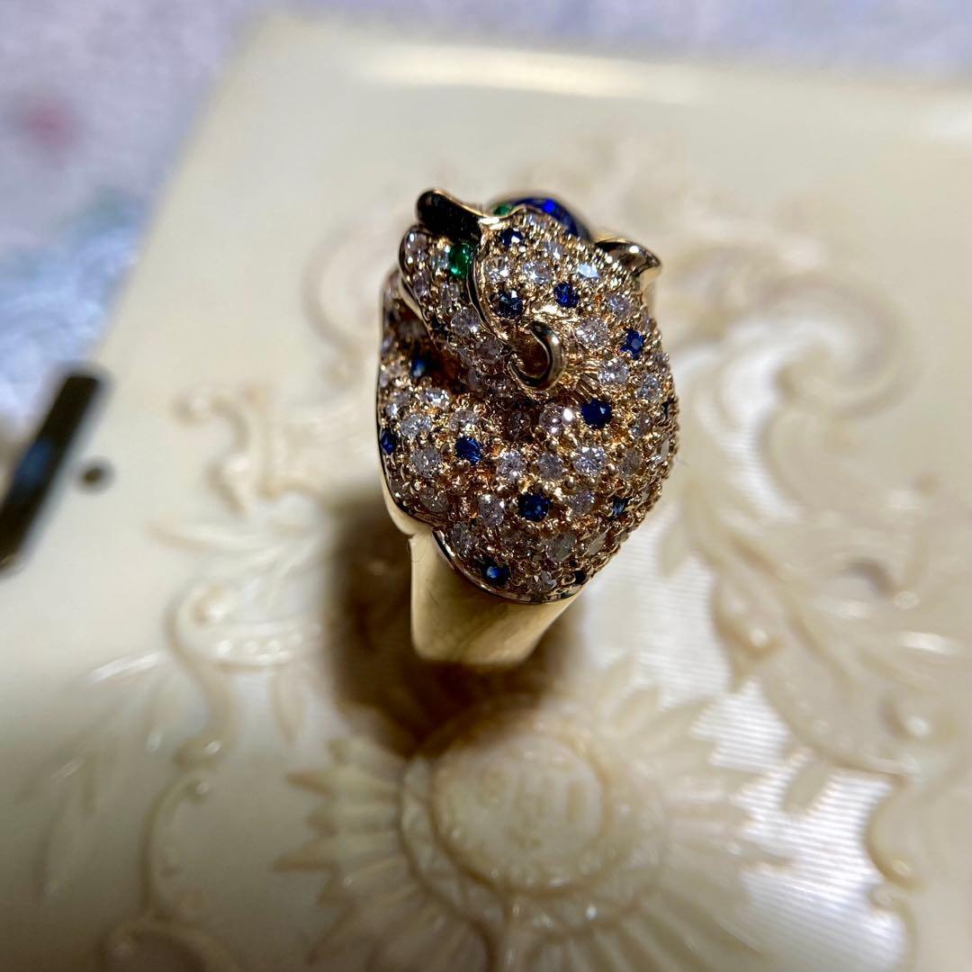 ポンテヴェキオ パンサーモチーフ ブルーサファイア エメラルド ダイヤモンド リング 指輪