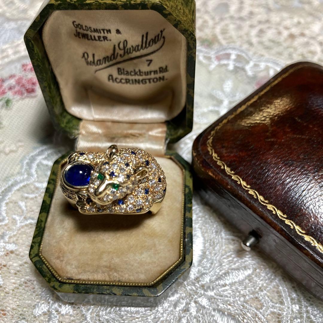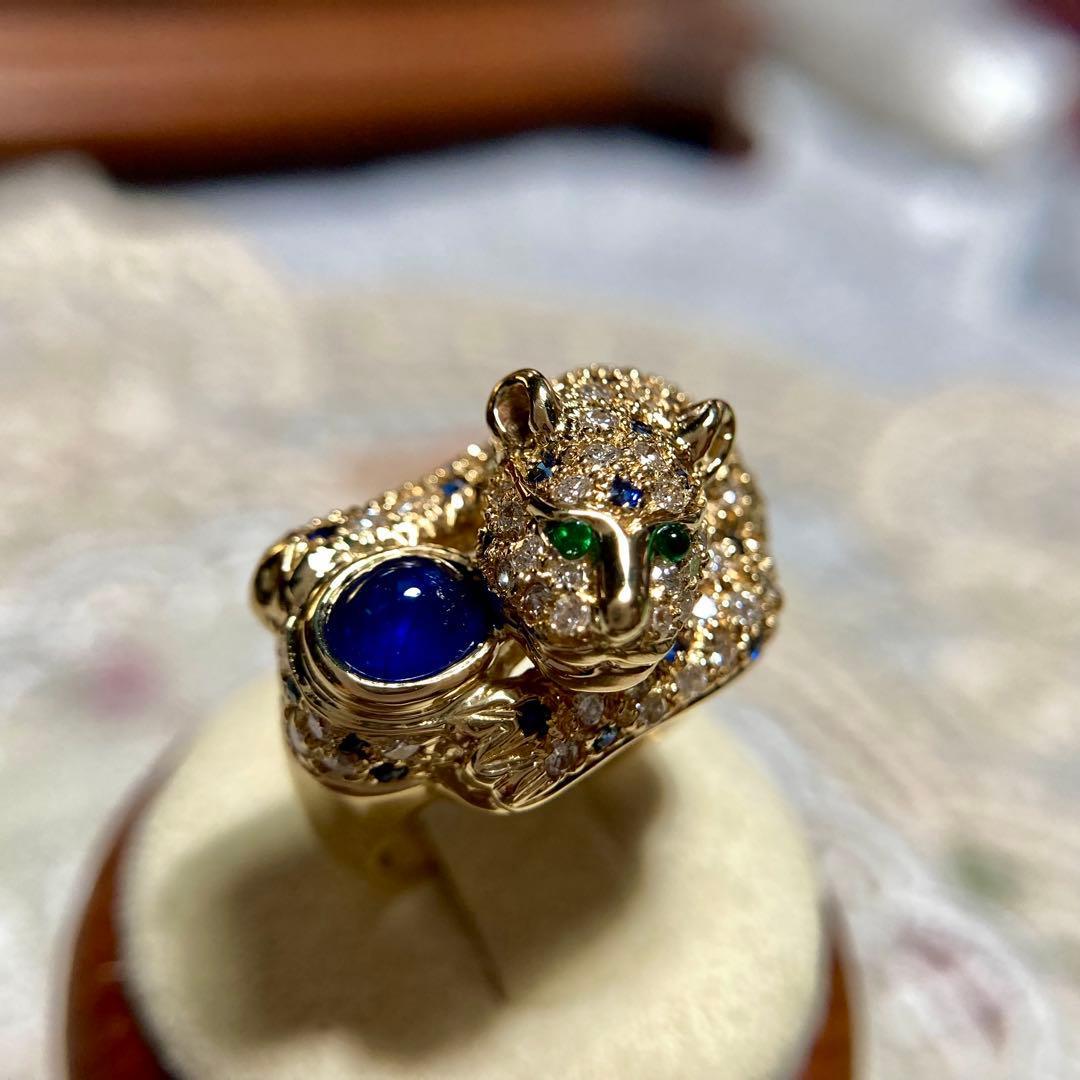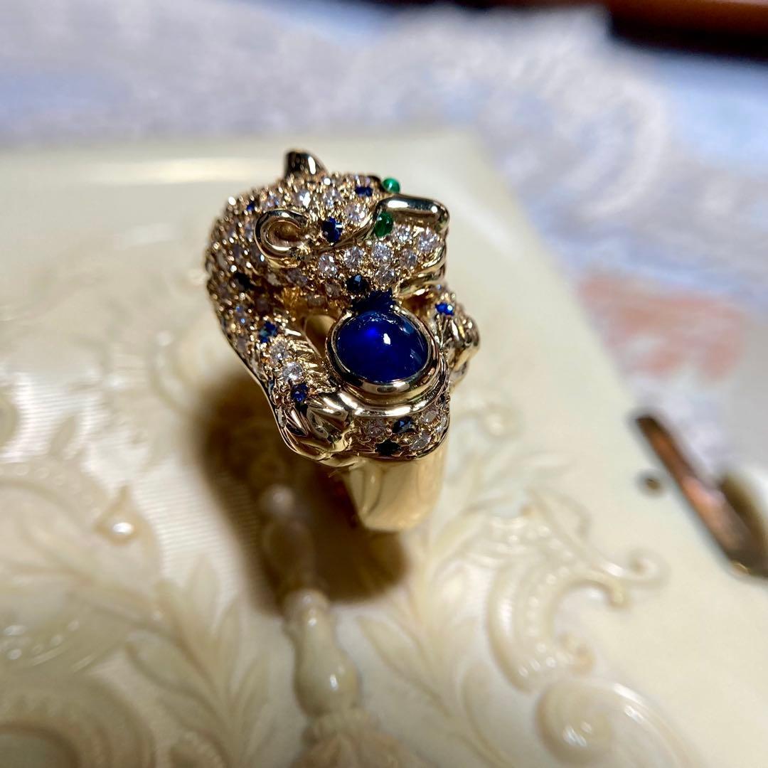 ポンテヴェキオ パンサーモチーフ ブルーサファイア エメラルド ダイヤモンド リング 指輪