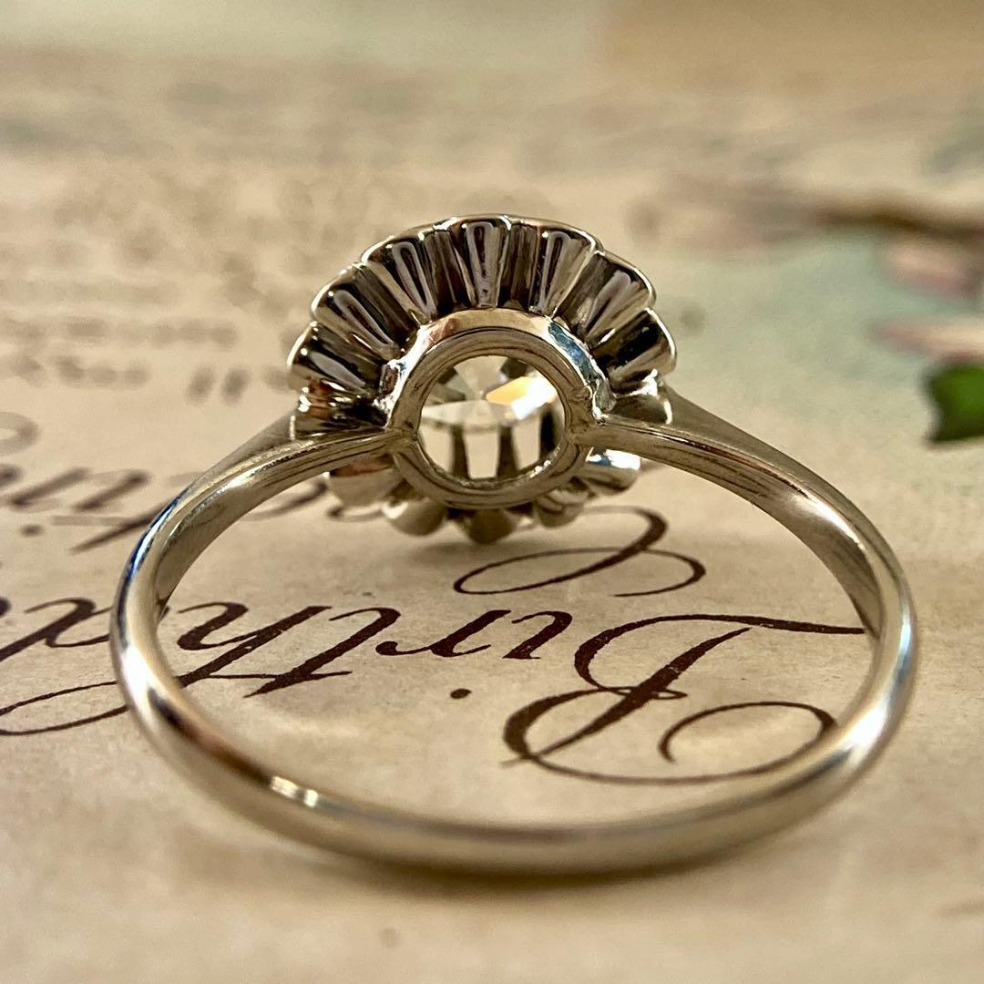 大正~昭和初期 稀少な菊爪留め アンティーク ダイヤモンドリング