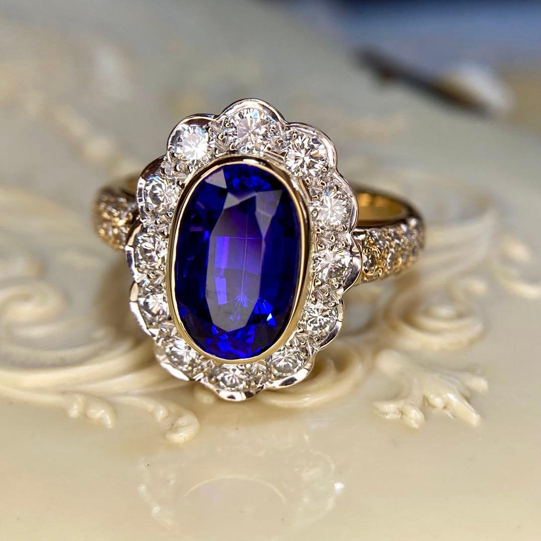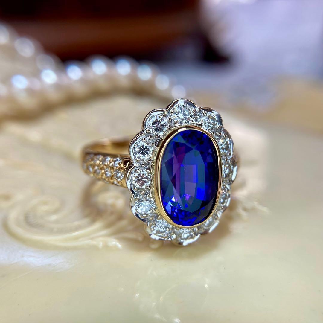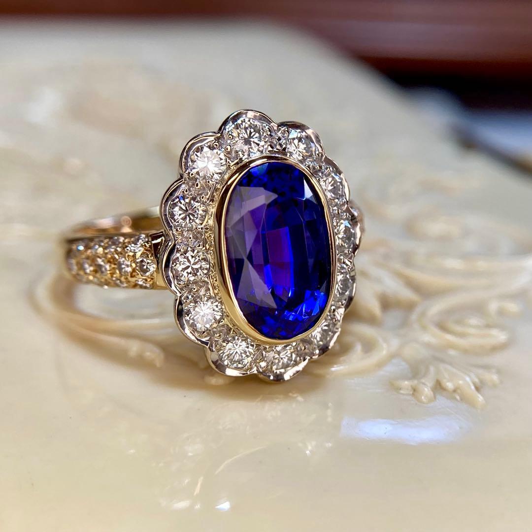 センターには、息をのむような美しさのオーバルカット・タンザナイト。