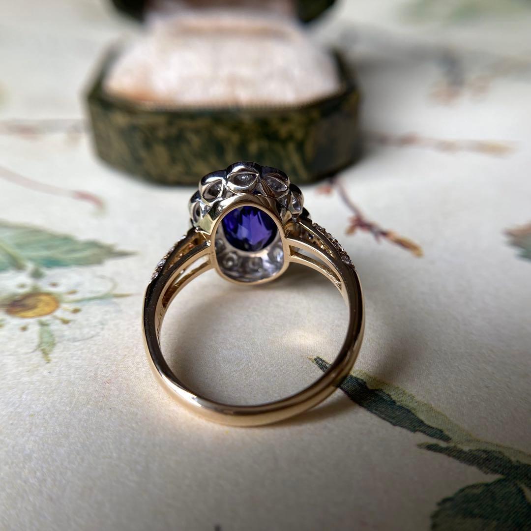 k18 英国製 ヴィクトリアン・リバイバル 美しいタンザナイト クラスタリング