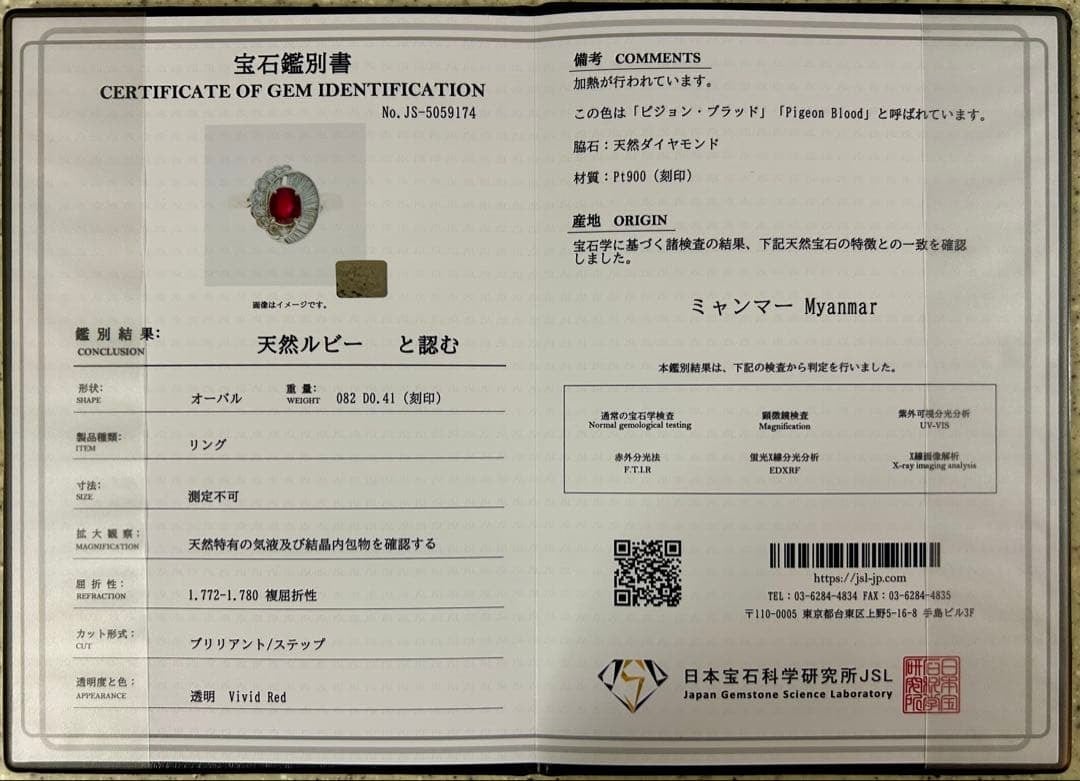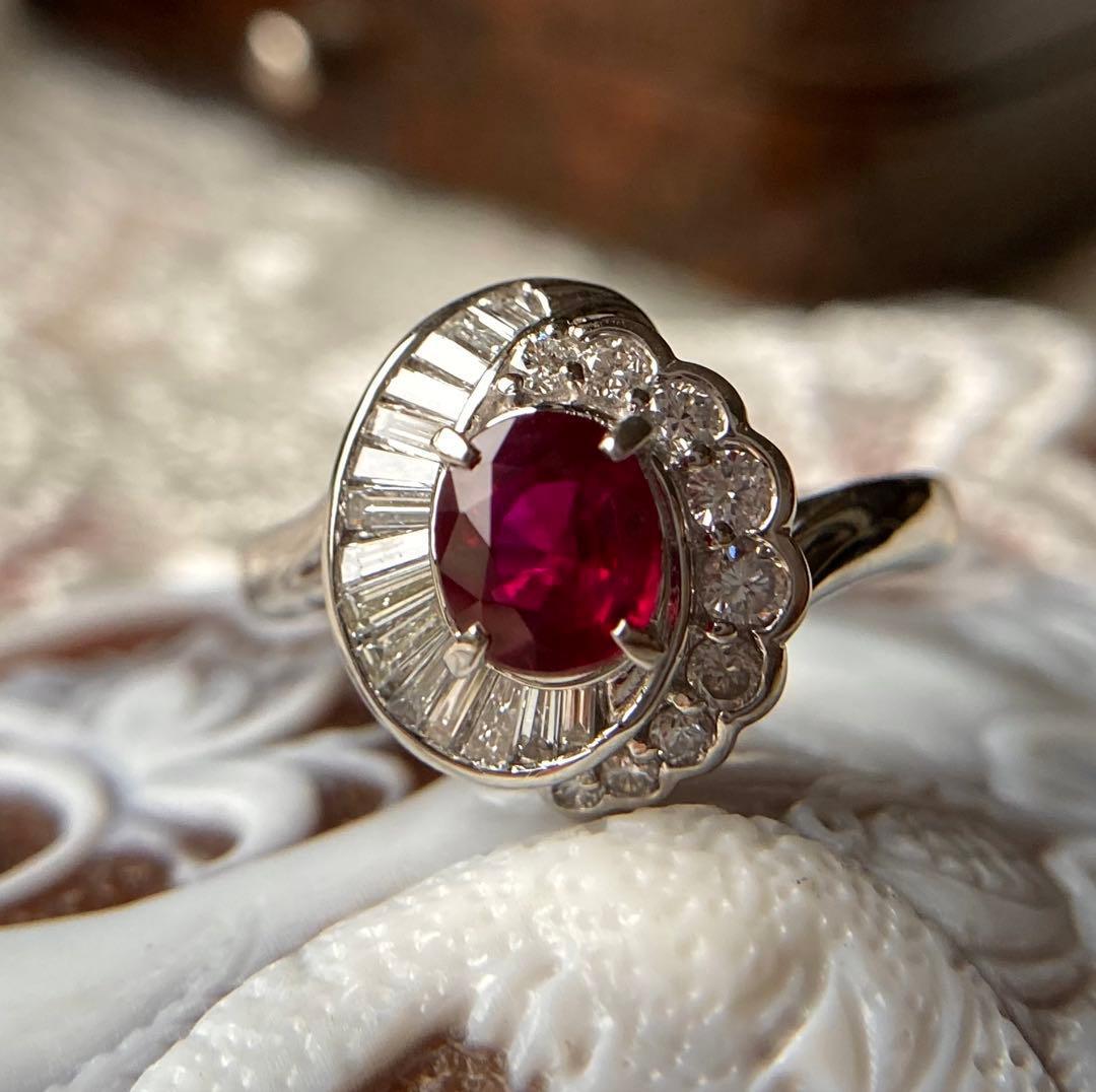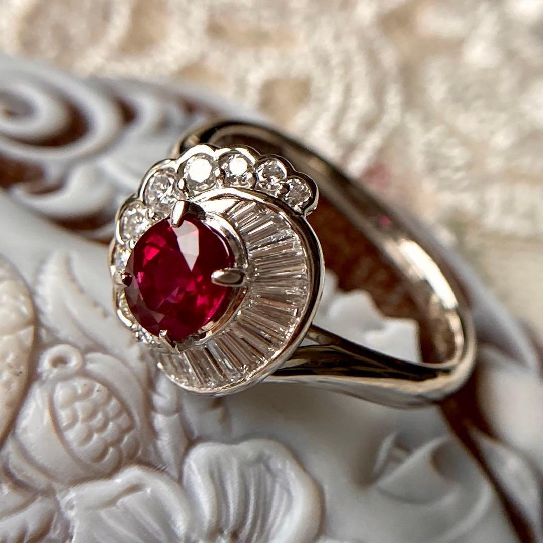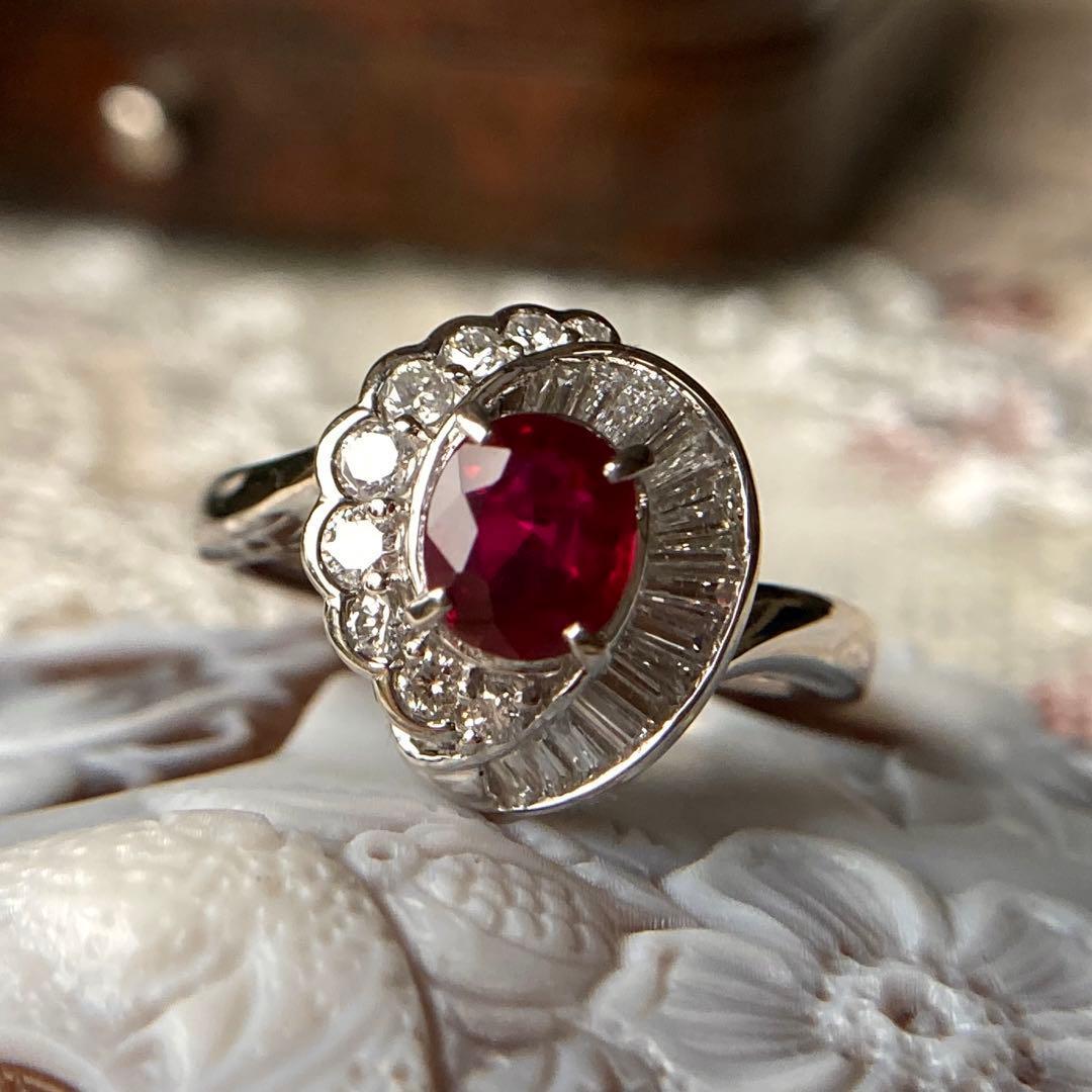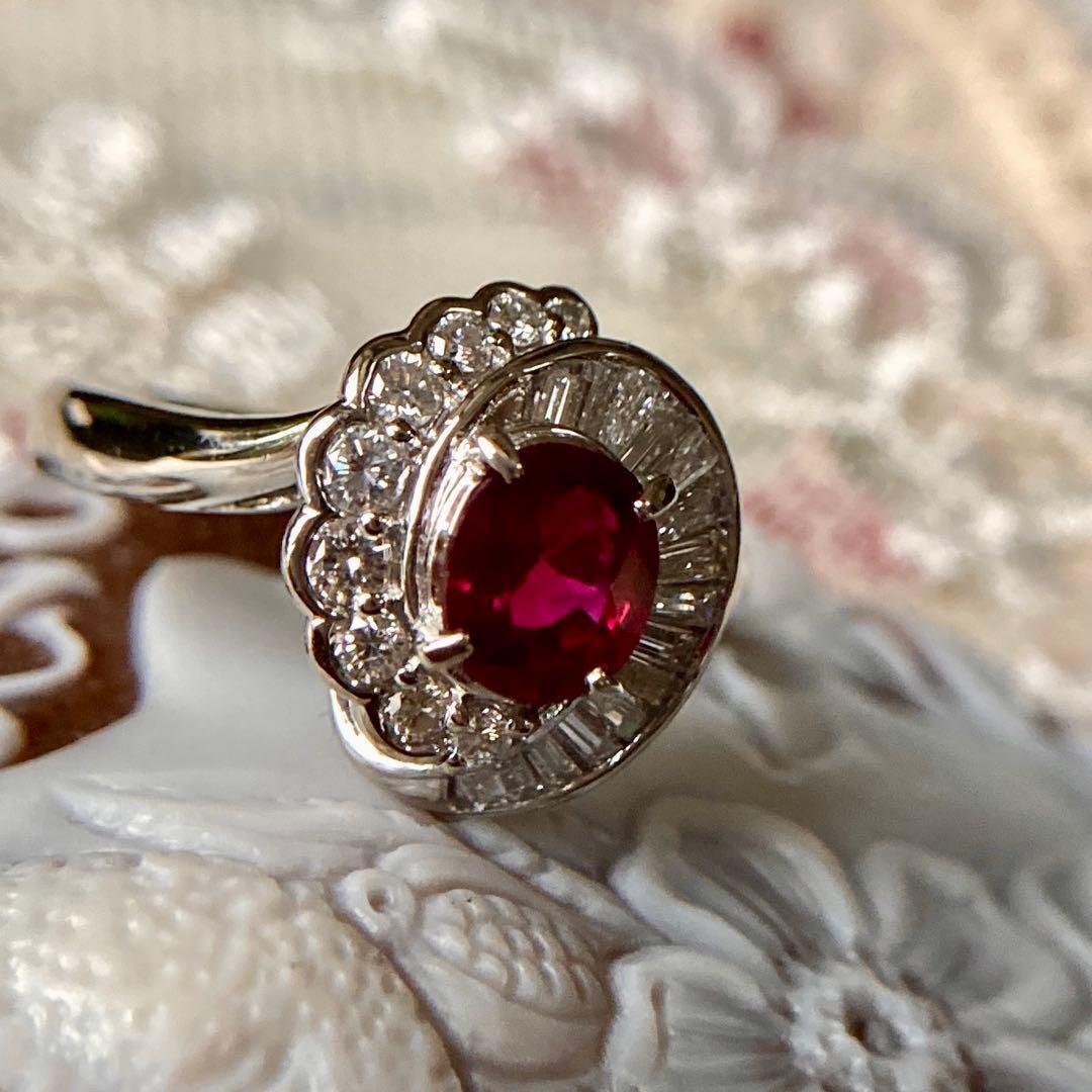 pt900 深紅の特別な一点 ビルマ産ピジョンブラッドルビー ダイヤ 指輪