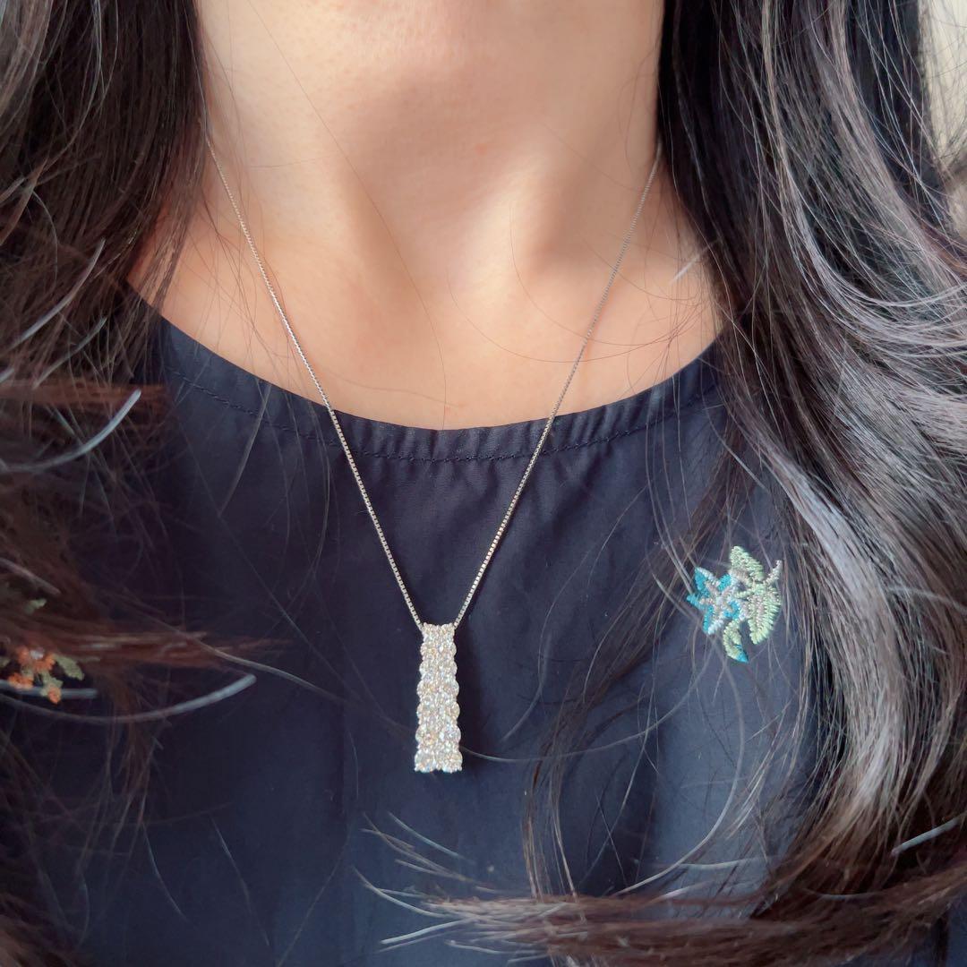 選び抜かれたダイヤモンドが隙間なくセッティングされ、胸元で圧倒的な存在感を放ちながらも、どこまでも品よく上質に輝きます。