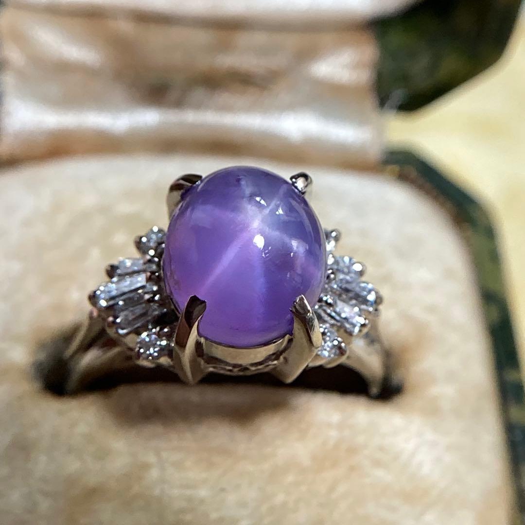 pt900 スリランカ産非加熱スターサファイア5.654ct ダイヤモンド 指輪