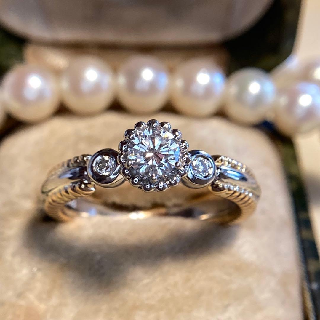 k18 pt900 巨匠 石川暢子先生 粒金細工 ダイヤモンド リング 指輪