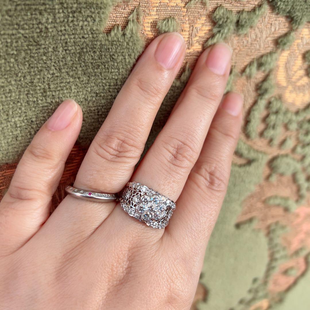 pt900 アンブローズ 天然ダイヤモンド1.07ct 透かし模様 指輪 リング