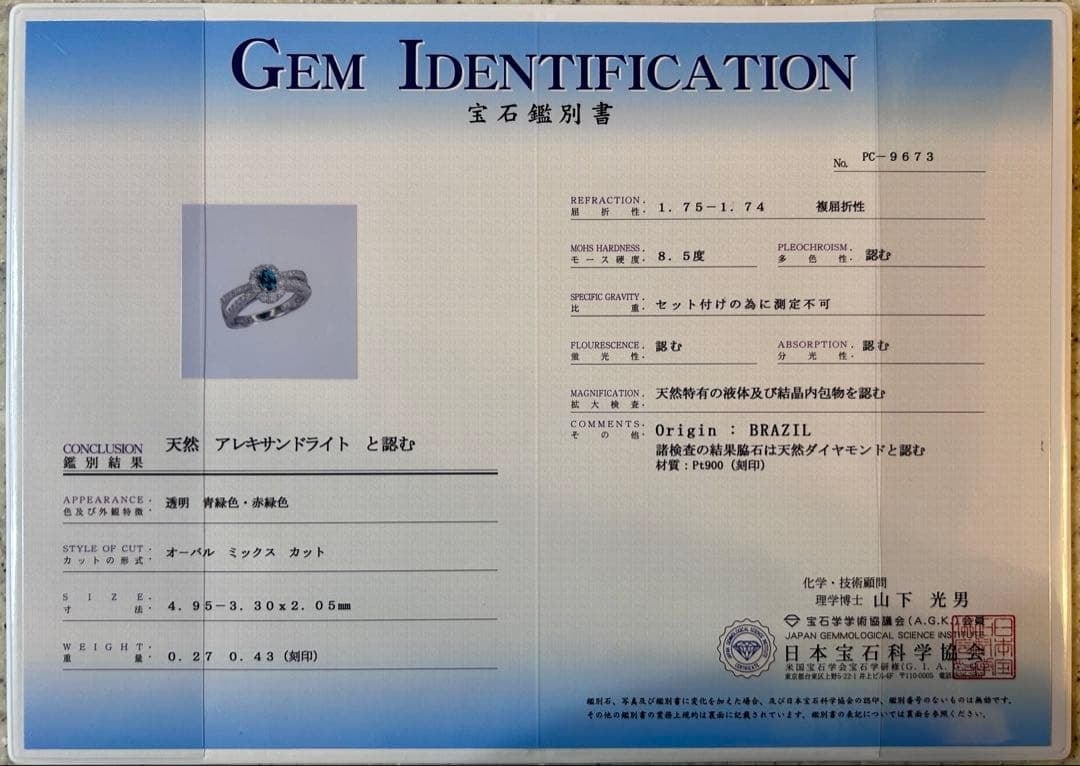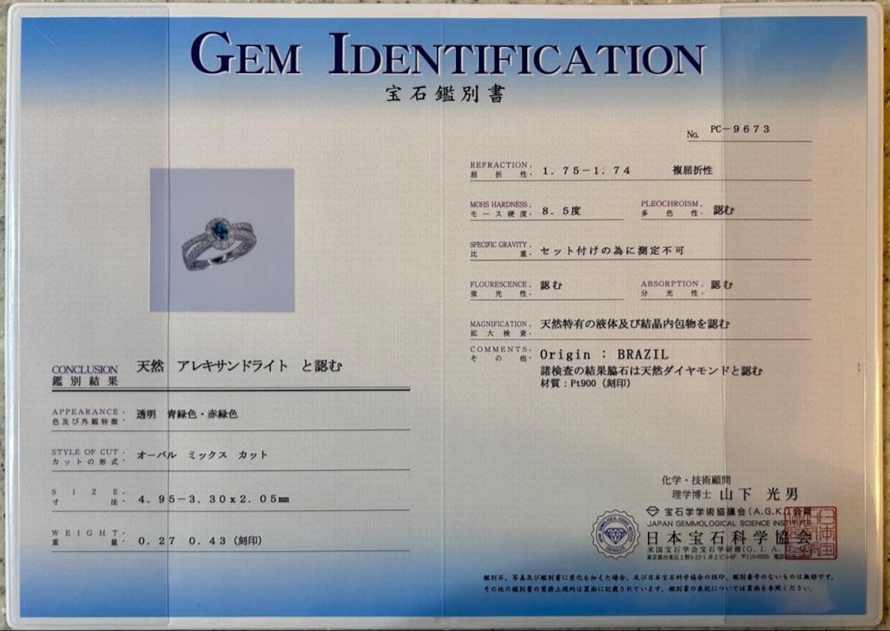 pt900 ブラジル産 アレキサンドライト ダイヤモンド 指輪 リング 鑑別書付