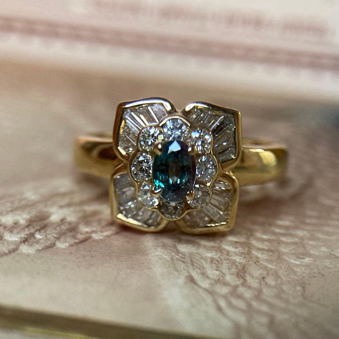 k18 天然アレキサンドライト0.30ct ダイヤモンド0.66ct 指輪リング