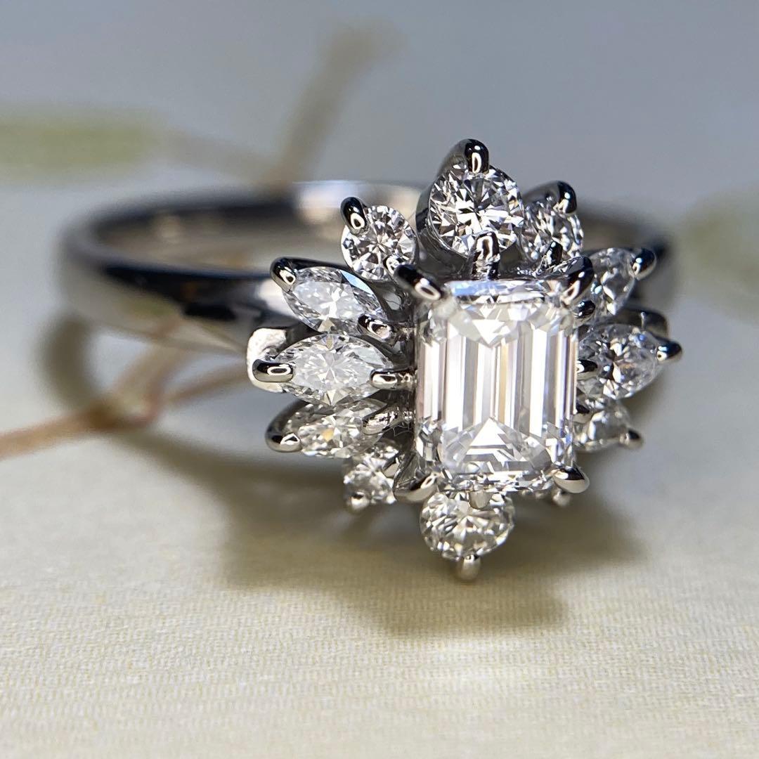 西武百貨店が手掛けた、エメラルドカット・ダイヤモンドヴィンテージリング。