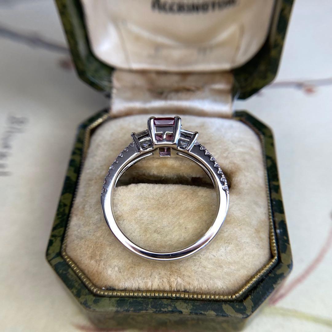 ルーペで見ると、パパラチアサファイアに僅かな内包物がございますが、澄んだ透明感を持ち、上質な結晶ならではの強い輝きを放ちます。真に価値ある一石。お手元で、至高の煌めきをご堪能ください。