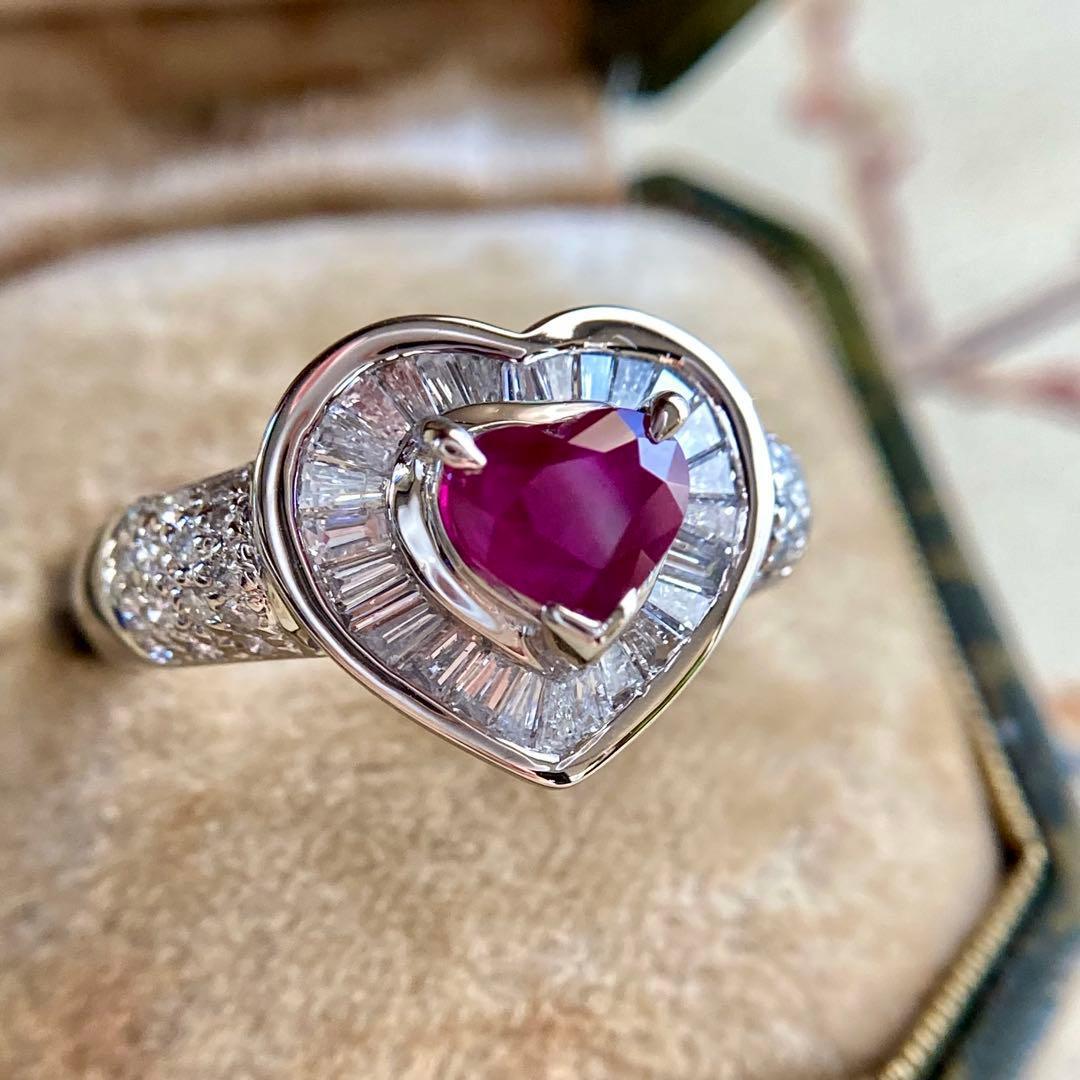 【専用です】pt900 深紅のビルマ産ハートルビー1.00ct ダイヤ0.75ct 指輪