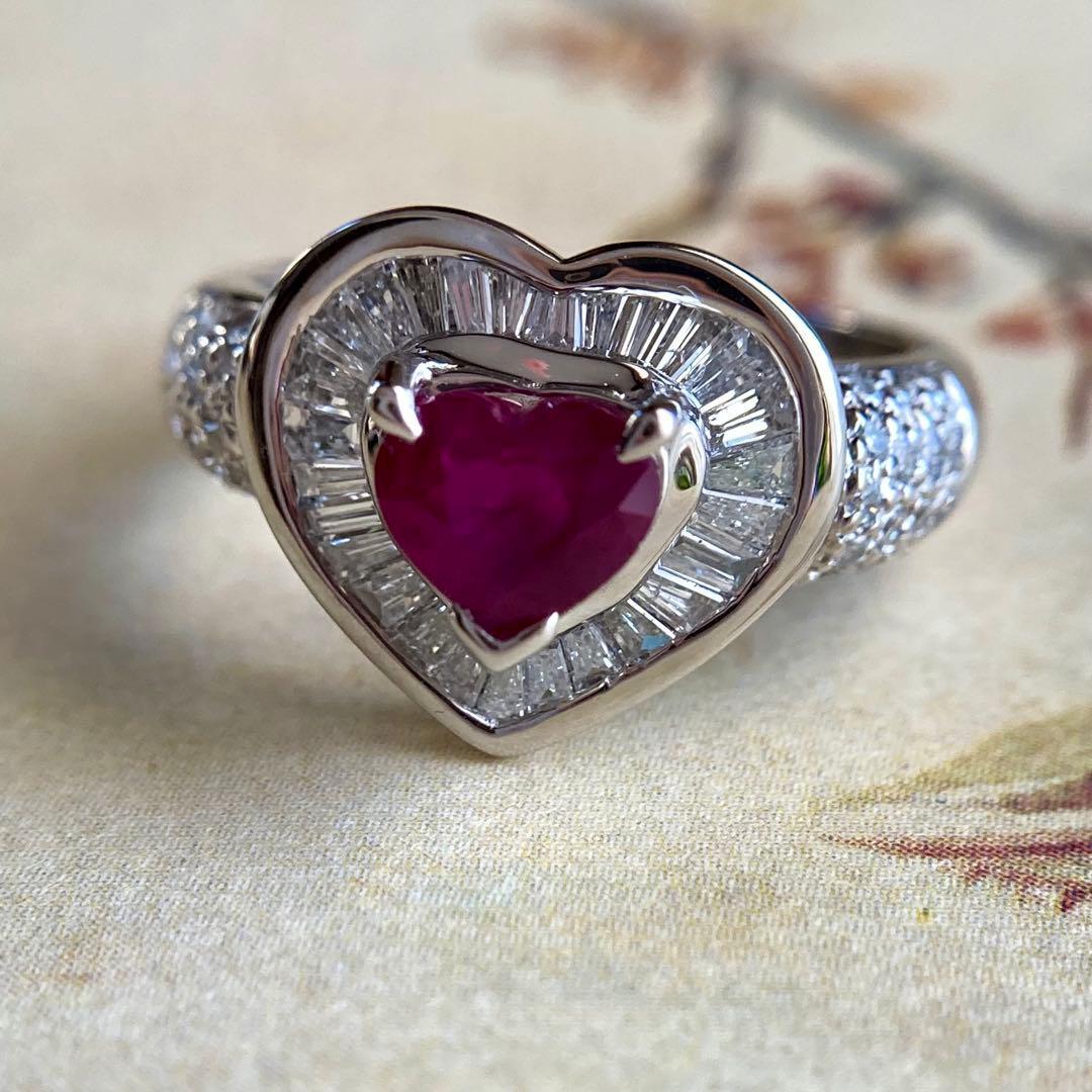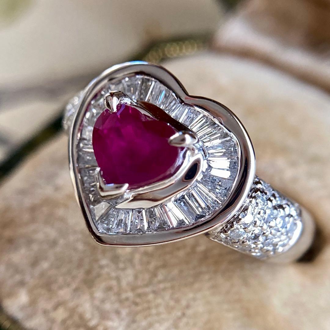 深紅のきらめき ビルマ産ルビー ハートダイヤモンドリング