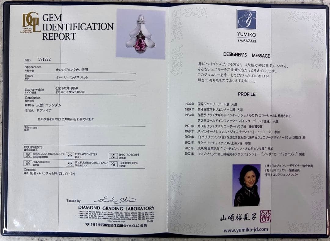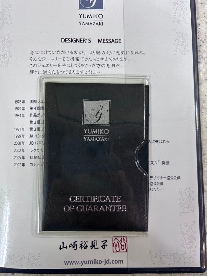 本品には、山崎裕見子先生のサイン入りのギャランティーカードと鑑別書が付属いたします。