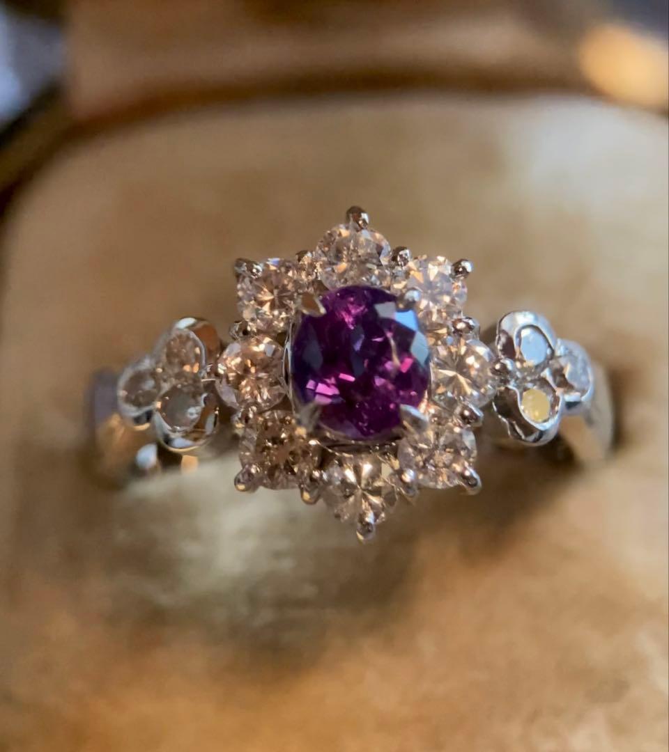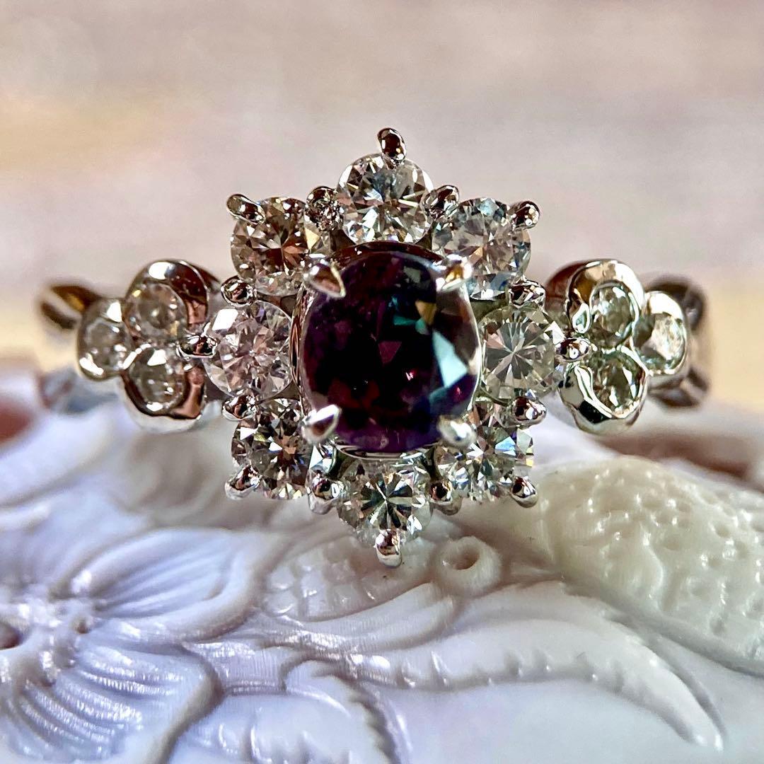 pt900 ブラジル産アレキサンドライト0.89ct ダイヤモンド 指輪 リング