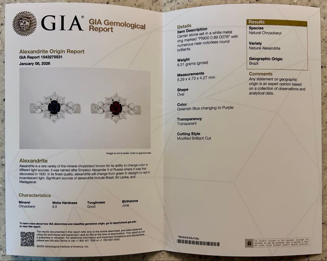 2026年1月より新フォーマットへと刷新されたGIA鑑別書が付属。