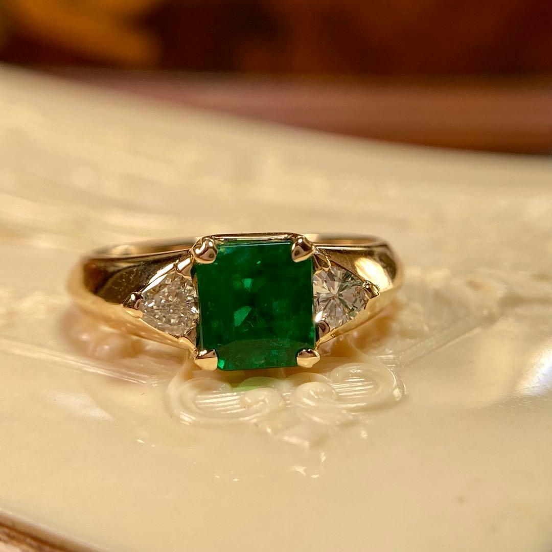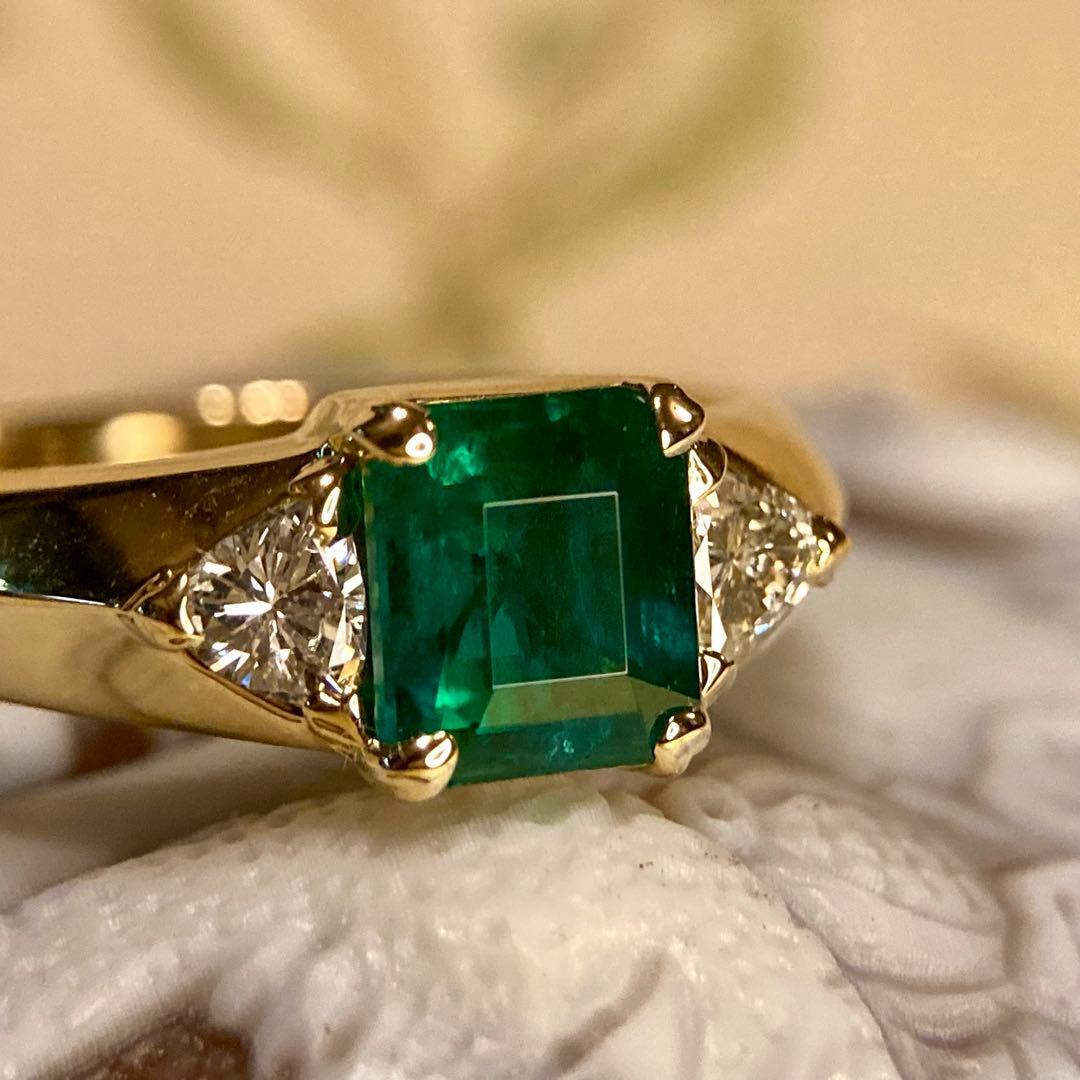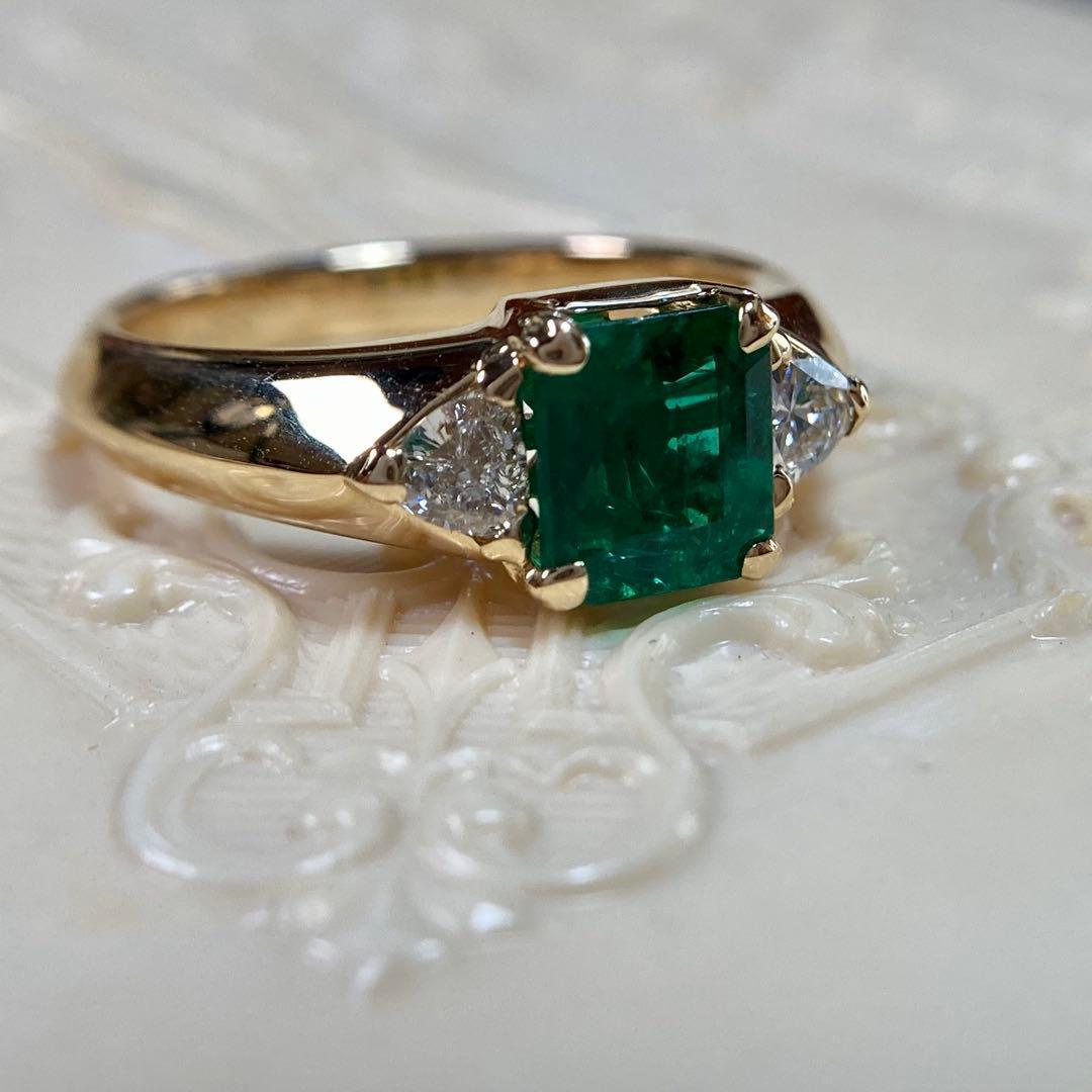 深い森の奥底に差し込む光を閉じ込めたような、静謐で気品溢れるエメラルドをあしらったリングのご紹介です。