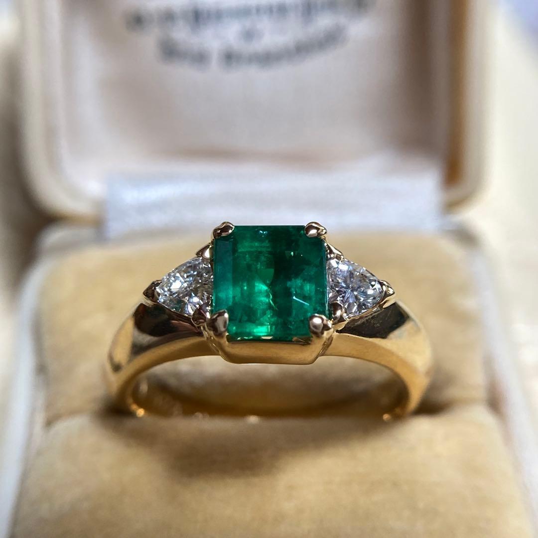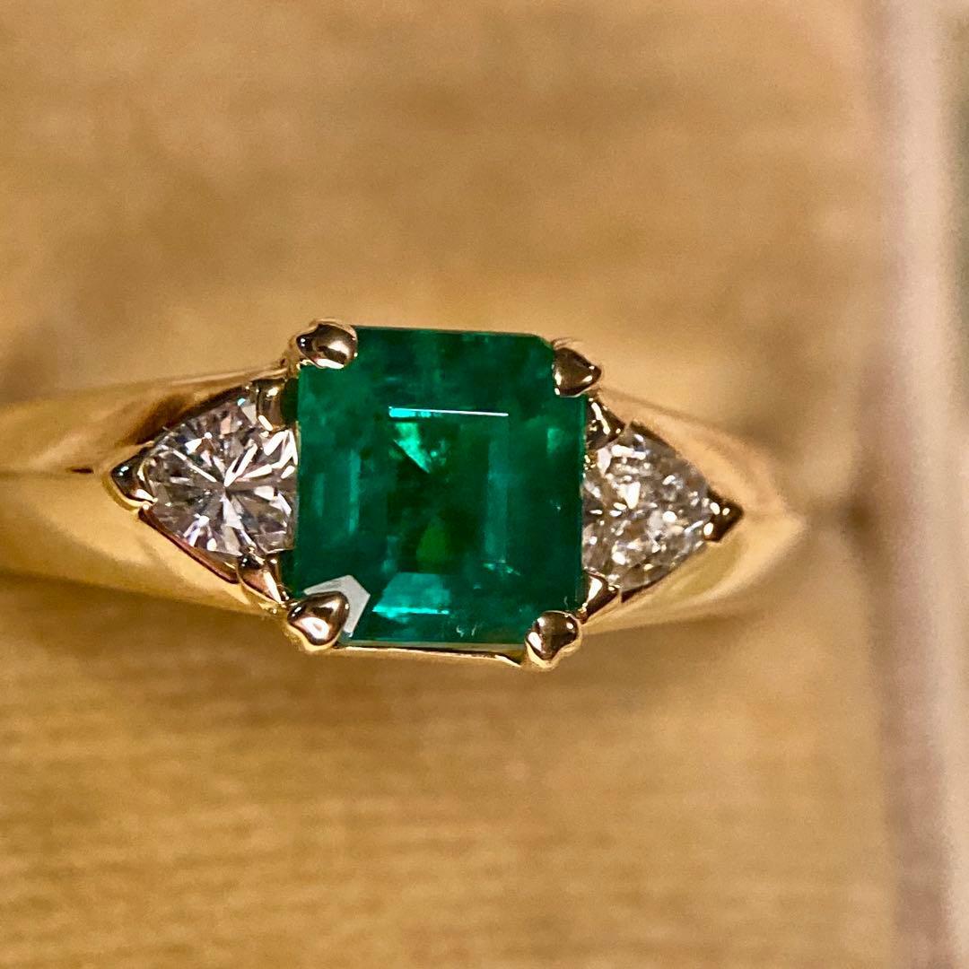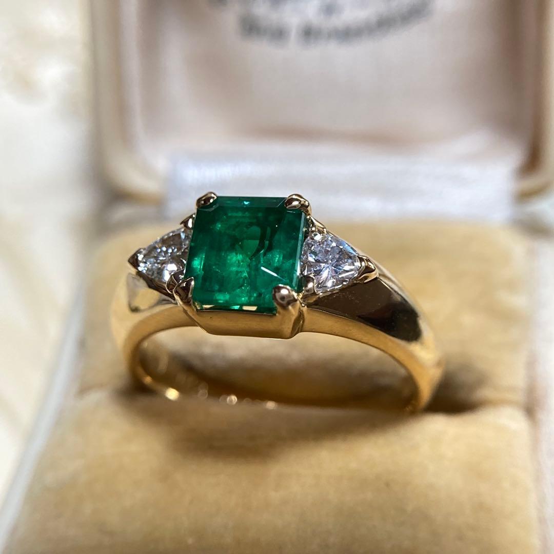 k18 GIA鑑別 F1 天然エメラルド1.23ct ダイヤモンド 指輪 リング