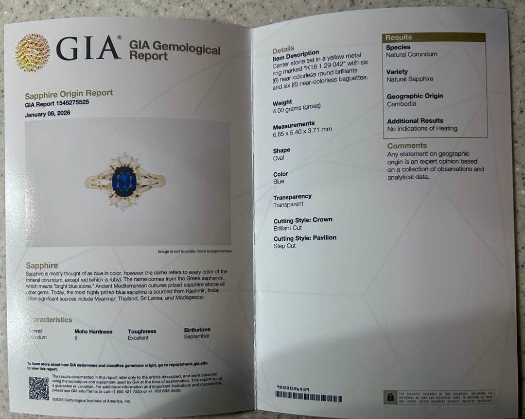 こちらの一石は、GIAの鑑別により 非加熱(No Indications of Heating) と判定された、たいへん希少なサファイアです。