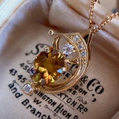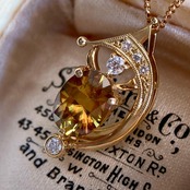 月の傍らには、零れ落ちる流星や一番星を思わせるダイヤモンドが丁寧に添えられ、主役であるスフェーンの神秘的な色調をいっそう気高く引き立てています。
