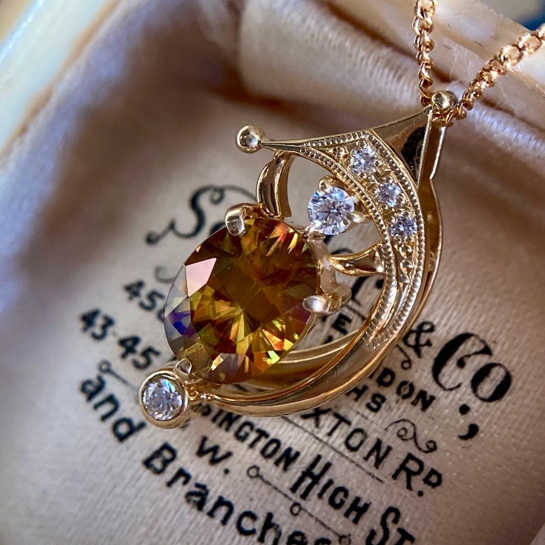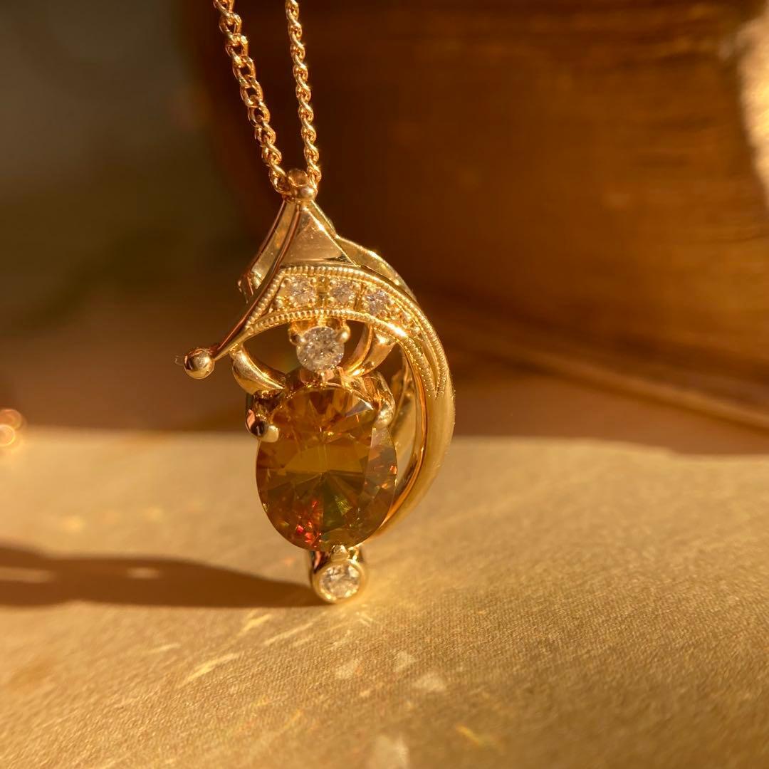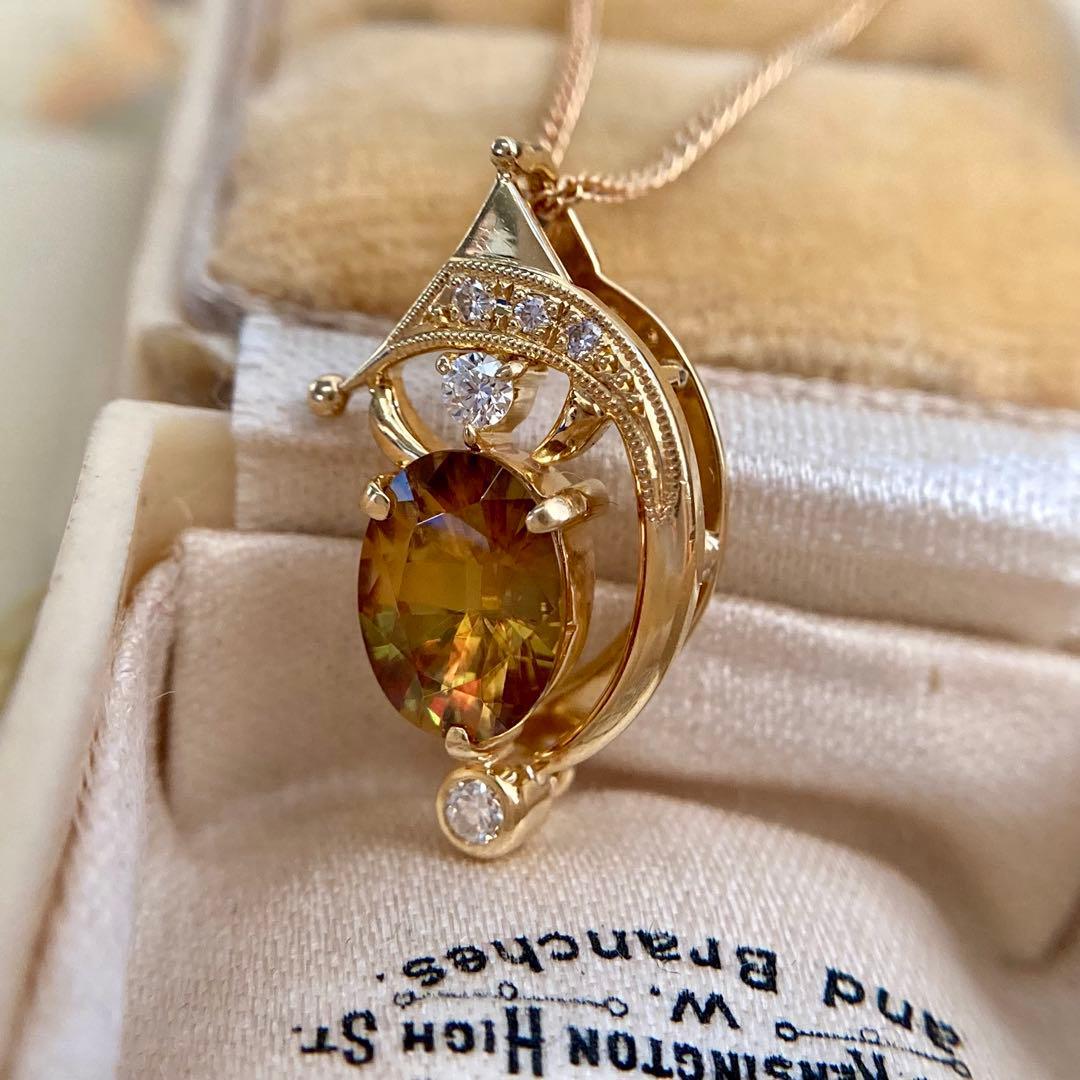 k18 三日月 流星 ファイアの美しいスフェーン ペンダントトップ