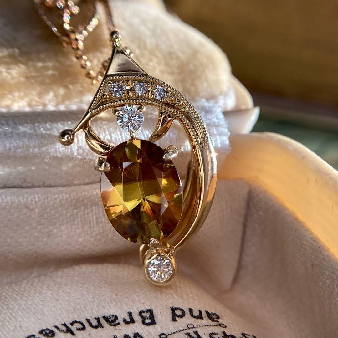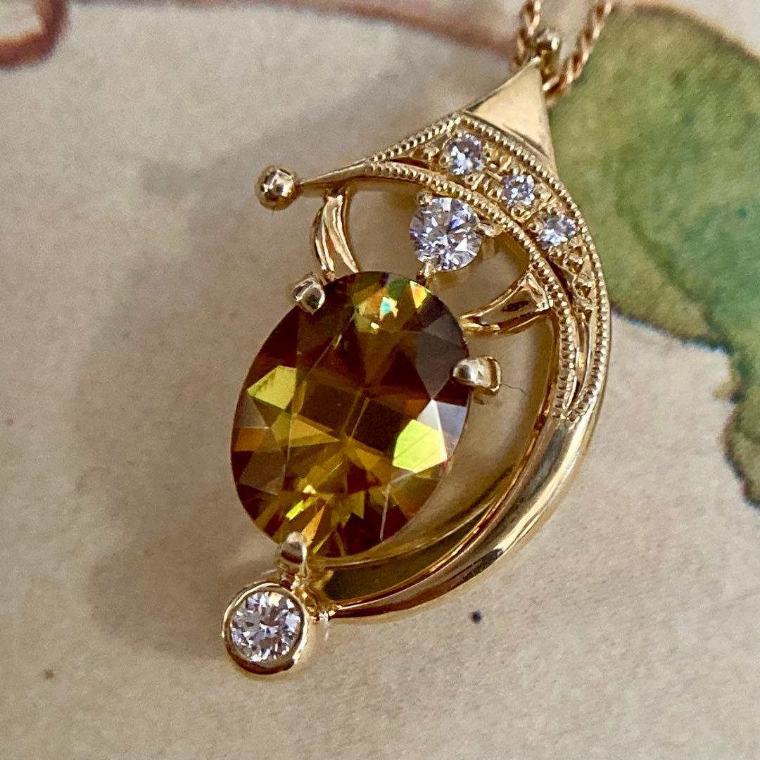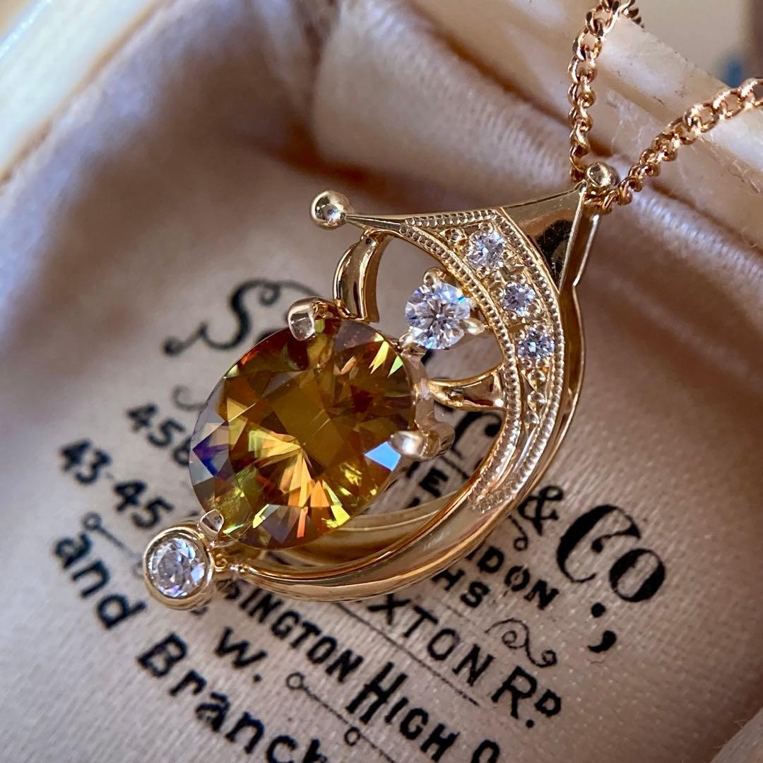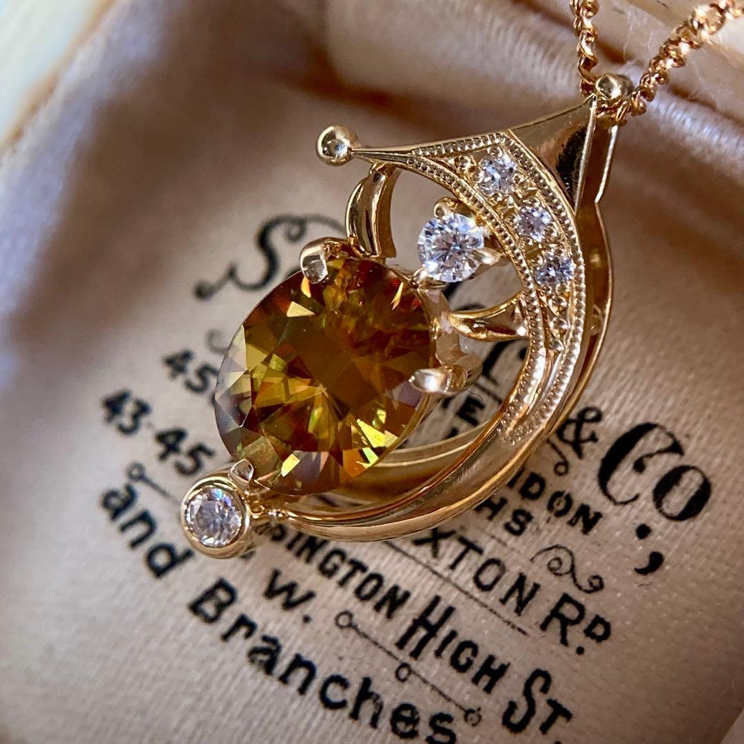 k18 三日月 流星 ファイアの美しいスフェーン ペンダントトップ