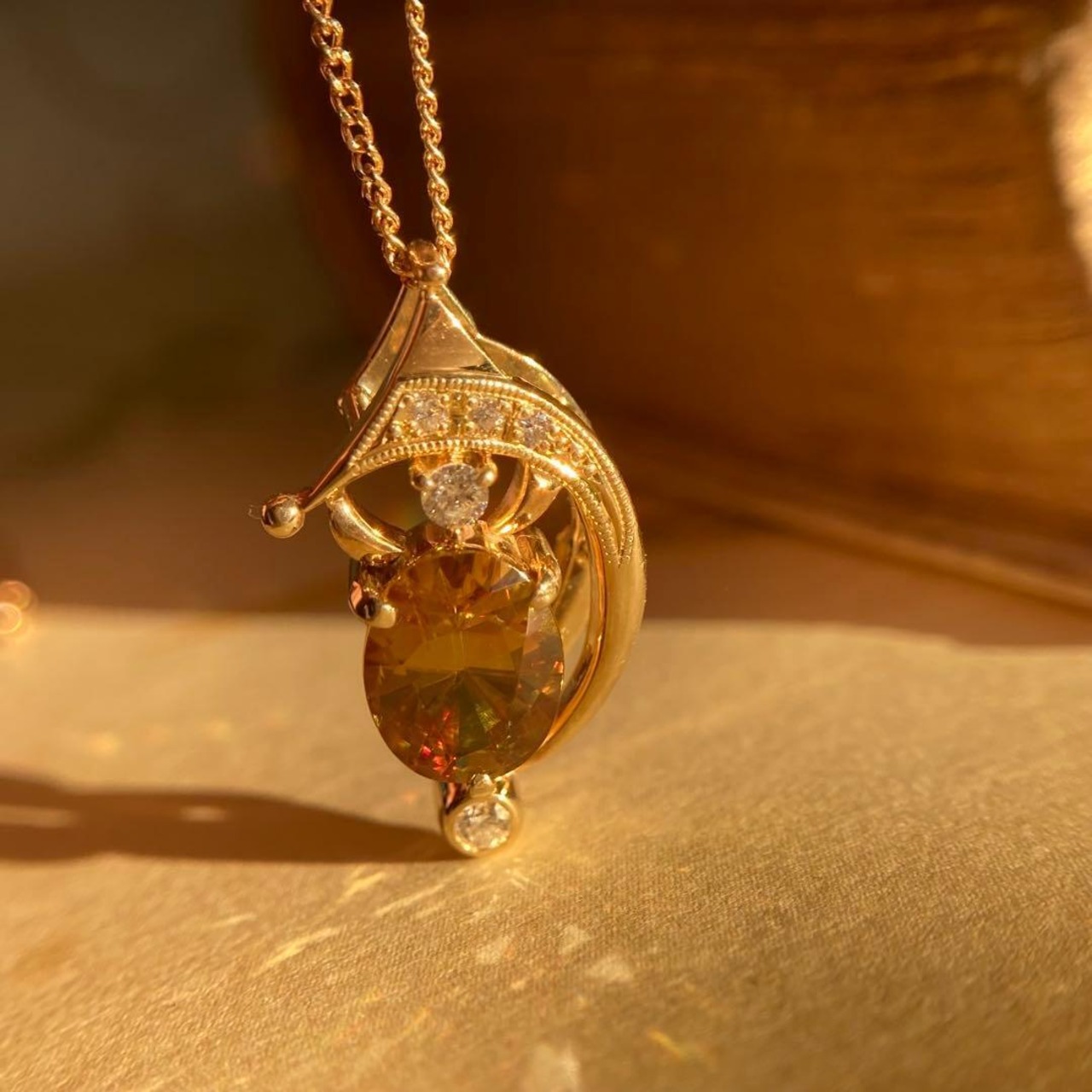 上質なスフェーンだからこそ宿るこの煌めきは、深い森の奥に差し込む陽光のようでもあり、手元に届くたびに新しい表情で目を楽しませてくれることでしょう。