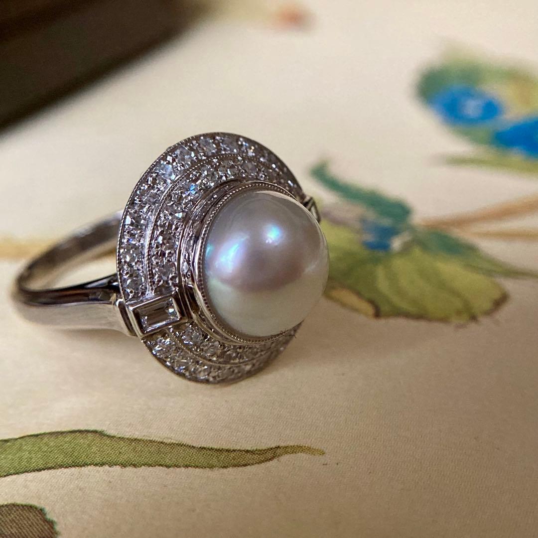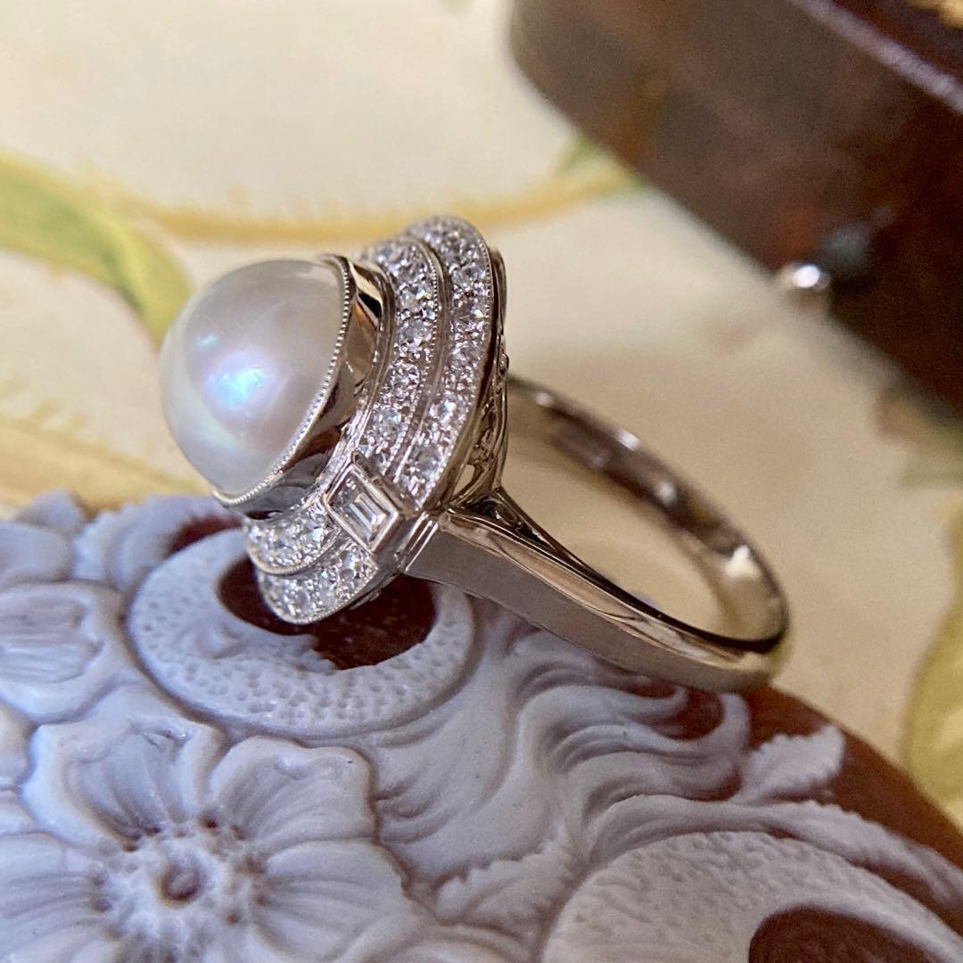 昭和初期の手仕事が息づく白蝶パール ダイヤモンドリング