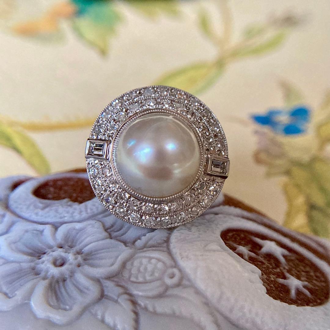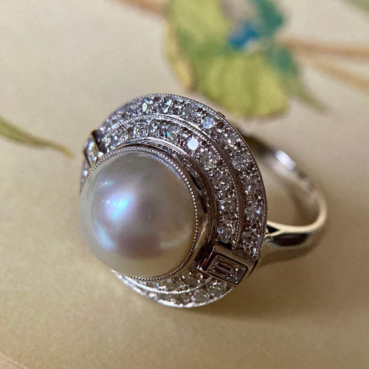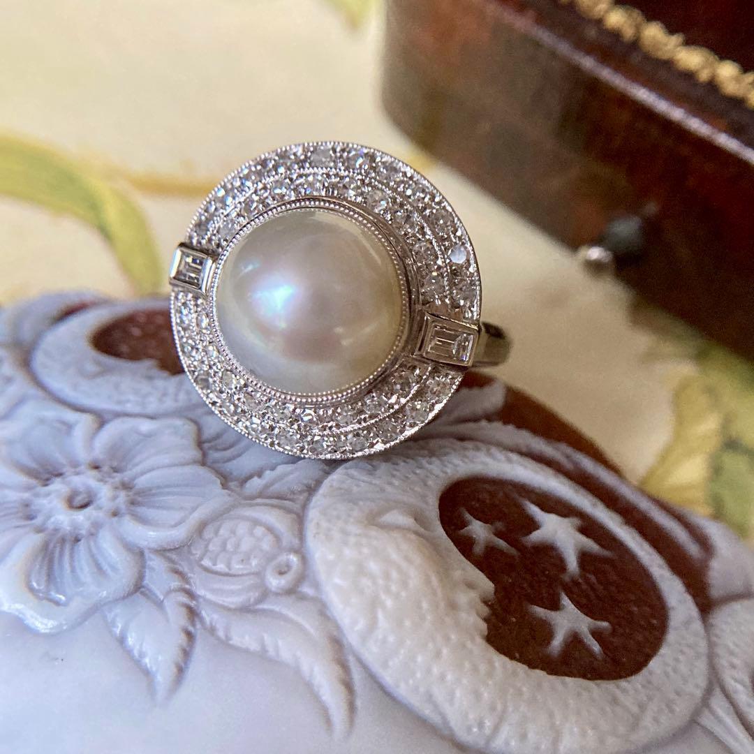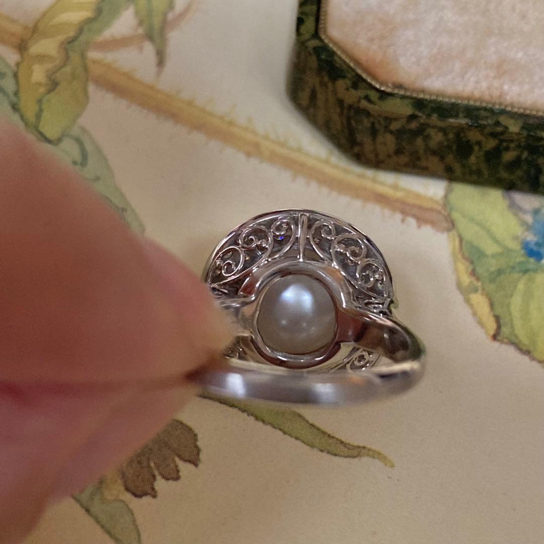 昭和初期、日本の宝飾文化が静かに成熟していった時代に生み出された、白蝶パールのアンティークリングです。