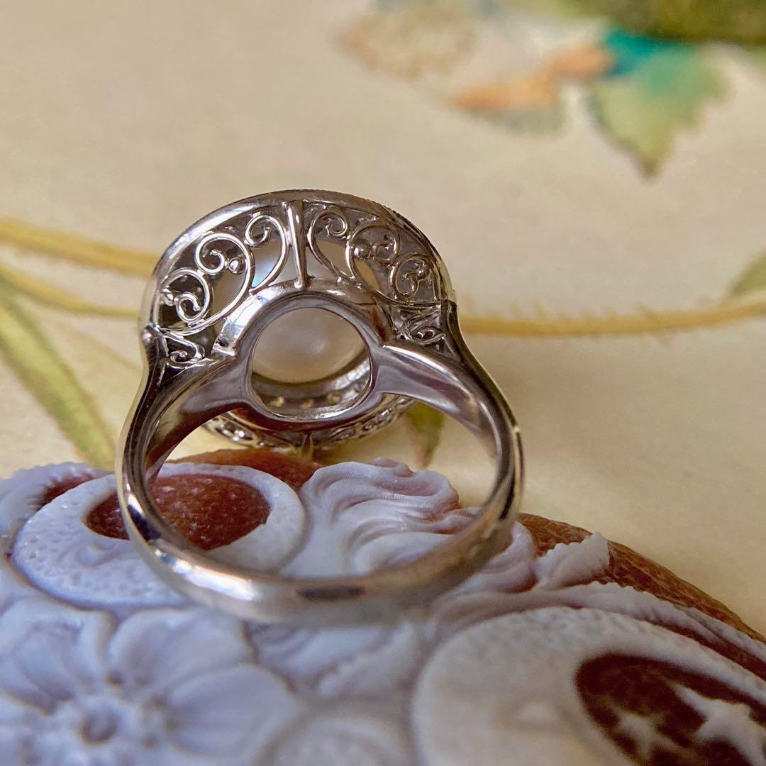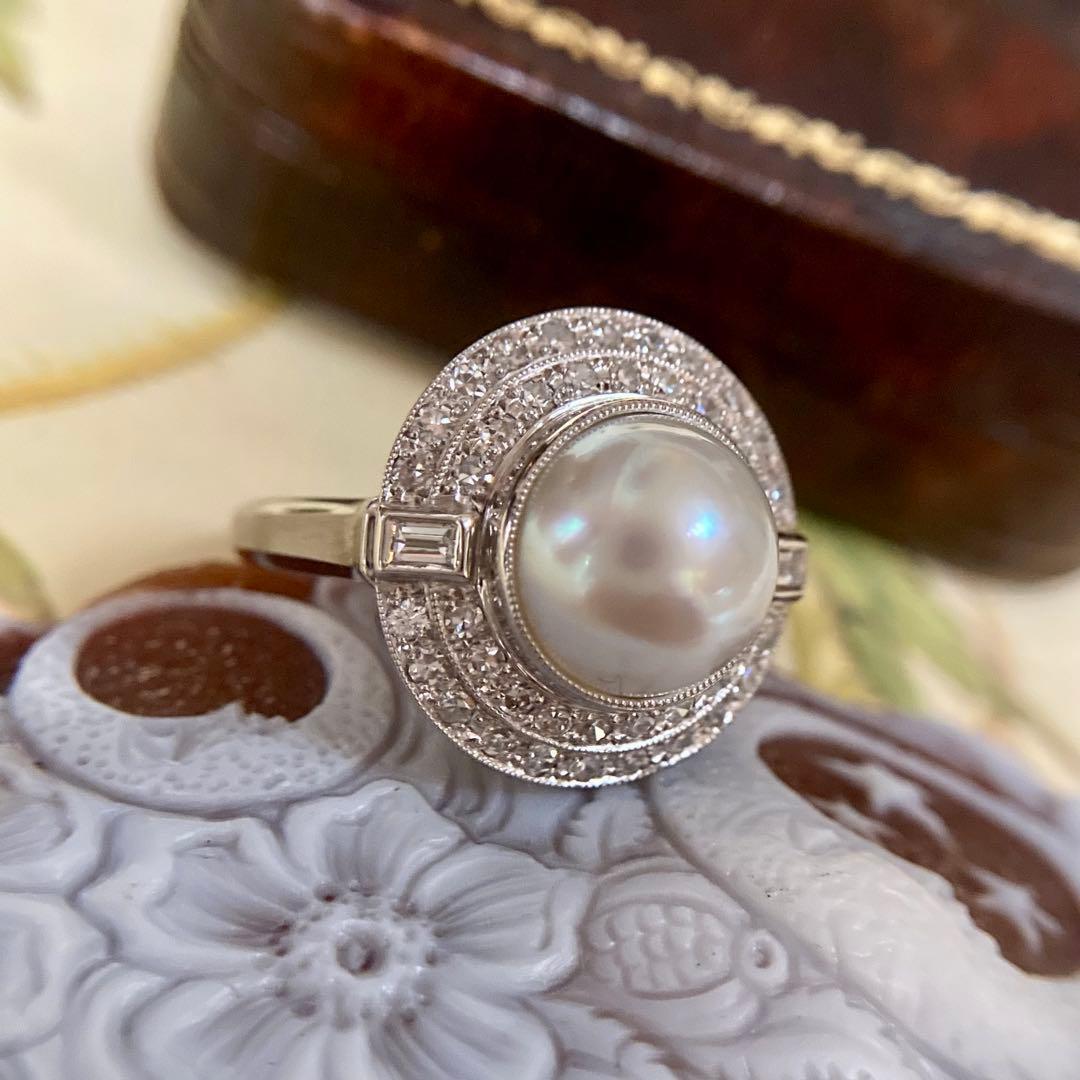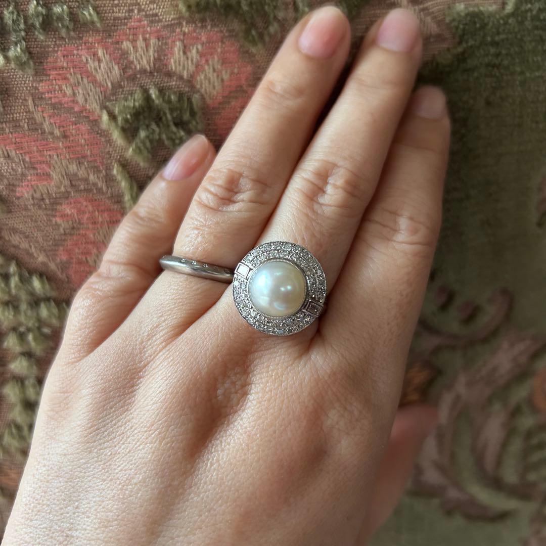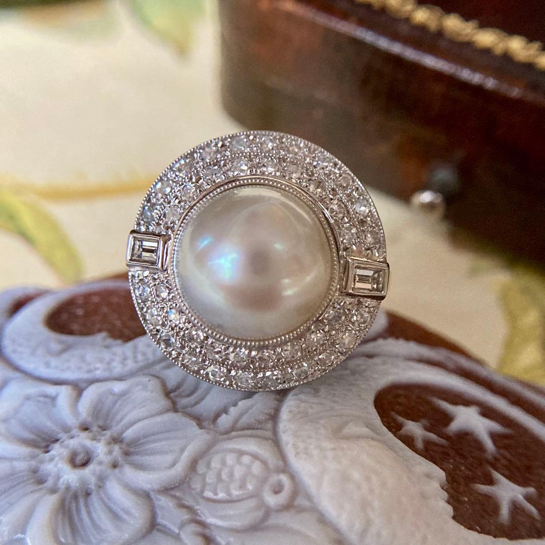 昭和初期、日本の宝飾文化が静かに成熟していった時代に生み出された、白蝶パールのアンティークリングです。